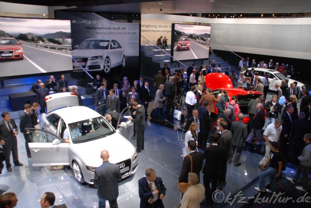 Die erste Internationale Automobil-Ausstellung fand im Jahre 1897 in Berlin im Hotel Bristol statt. Auf ihr waren insgesamt acht „Motorwagen“ zu sehen. Mit der zunehmenden Mobilität stieg auch die Anzahl der Fach-Aussteller auf der IAA. Waren es im Jahre 1921 noch 67 Hersteller auf der IAA, so wuchs die Zahl jährlich an und beträgt heute über 1000 Aussteller aus 40 Ländern, darunter viele Zubehörhersteller, auf 229.000 Quadratmetern. Im Jahre 1939 sahen auf der IAA in Berlin 825.000 Messebesucher die Vorstellung des neuen Volkswagens, den Käfer.Zur ersten Nachkriegs-IAA im Jahre 1951 wechselte der Messeort von Berlin nach Frankfurt am Main. Die IAA Personenkraftwagen findet seit 1953 alle zwei Jahre in Frankfurt am Main auf der Frankfurter Messe statt. Die 45. Ausstellung wurde 1971 aus wirtschaftspolitischen Gründen kurzfristig abgesagt.1989 fand die letzte IAA mit den gemeinsamen Bereichen PKW und Nutzfahrzeuge in Frankfurt a. M. statt und erzielte einen Besucherrekord mit 1.233.100 Messegästen. Wegen der Zunahme der präsentierenden Hersteller teilte man die Fachmesse ab 1989 im zweijährigen Rhythmus auf in PKW und LKW.Im Jahr 2001 fand die IAA aufgrund der Anschläge vom 11. September unter Trauerbeflaggung statt. Alle feierlichen Aktivitäten wurden abgesagt.2005 standen erstmals auch chinesische Automarken auf der IAA. 940.000 Fachbesucher kamen aus 99 Ländern. Jeder 7. von ihnen war aus dem Ausland, über 70 Prozent aus Europa. Es waren mehr als doppelt so viele, 10 Prozent, aus Amerika angereist -verglichen mit der IAA davor. Der Anteil der Fachbesucher aus Asien stieg (von 9) auf 15 Prozent.Fast 90 Prozent der Deutschen nannten bei einer Umfrage im Jahr 2005 die IAA als Fachmesse der Automobilindustrie. Es berichteten über 14.000 Journalisten, davon 40 Prozent aus dem Ausland. 2007 sind 88 Auto-Weltpremieren (davon 46 von deutschen Herstellern) zu sehen, beispielsweise Hybridfahrzeuge.Die internationale Bedeutung der IAA als weltgrößte Fachmesse im Automobilbau ist terminlich getrennt nach Fachbesuchern aus der Industrie und einem allgemeinzugänglichen.Standort Insgesamt über 1000 Aussteller bieten seit 1991 dem breiten Publikum im jährlichen Wechsel eine Messe IAA Personenkraftwagen (in ungeraden Jahren) in Frankfurt am Main und eine Messe IAA Nutzfahrzeuge (in geraden Jahren) in Hannover an. Die Hersteller nutzen die Messe regelmäßig, um neue Fahrzeuge und Produkte zum ersten Mal der Öffentlichkeit vorzustellen. Termin Die IAA findet immer Mitte des Monats September statt, so 2007 vom 13. bis 23.