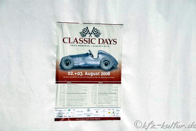 Mit Mercedes Benz feiern die Classic Days am Schloss Dyck im Jahr 2008 das Jubiläum zum Thema „100 Jahre Grand Prix-Erfolge“. Insgesamt vier Formel 1 Boliden sind am Schloss zu sehen, aber auch der Benz 1908 mit dem Christian Lautenschlager 1908 den Grand Prix von Dieppe (F) gewann. Hans Herrmann fährt seinen „Dienstwagen“ – einen Silberpfeil W 196 aus dem Jahr 1955.