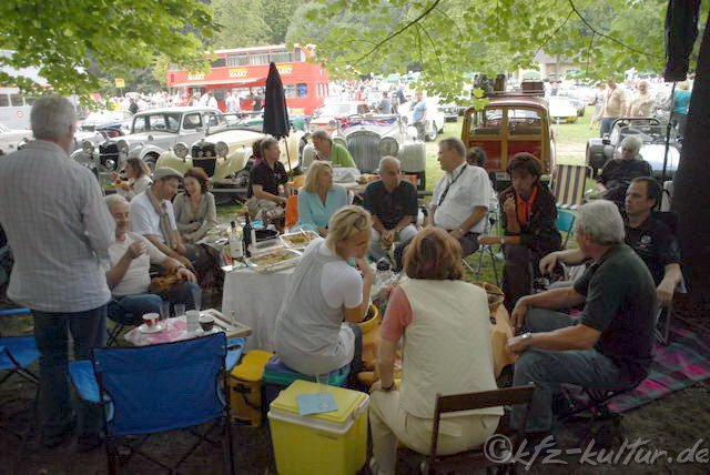 Picknicken rund ums Schloss ist ausdrücklich erwünscht, Musikprogramm sorgt auf den Wiesen vor der Torburg für Unterhaltung. Im Concours d´Elegance ist Flanieren angesagt. Alle Besucher sind einladen in zeitgenössischer Kleidung und mit dem eigenen Klassiker zum Schloss zu kommen.