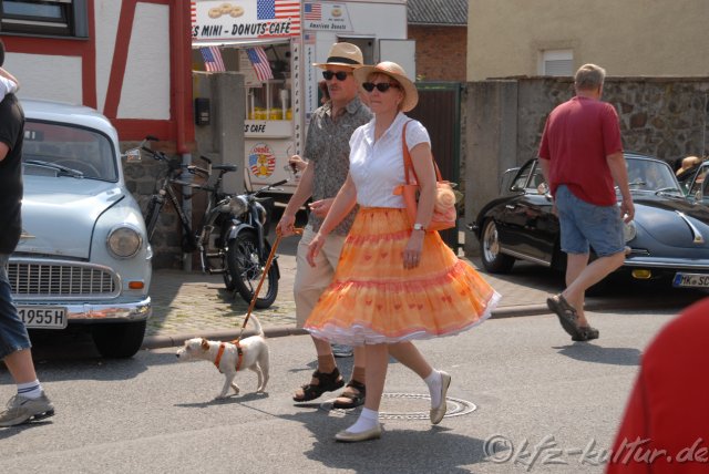 Der Veranstalter Golden Oldies ist stolz von abermals 70000 Zuschauer an 3 Tagen. Hier bei KFZ-Kultur.de sehen Sie 600 Bilder Fotos vom Samstag, den 26.7.2008 Vom 25. bis 27. Juli 2008 in Wettenberg 19. Festival Golden Oldies- Eine hessische Gemeinde auf Zeitreise in die Wirtschaftswunderzeit der 50er und 60er 3 Tage - 9 Bühnen - 50 Livebands - über 1.000 Oldtimer und 70.000 Besucher Musik & Motoren beim Festival Golden Oldies im Schatten der Burg Gleiberg Das mittelhessische Wettenberg wird zum 19. Mail für drei Tage „Deutschlands Hauptstadt der Oldiemusik“. Auf 9 Bühnen präsentieren rund 50 Musikgruppen Schlager, Beat, Soul, und Rock’n’Roll im Schatten der Burg Gleiberg. Eine atemberaubende Zeitreise in die 50er, 60er und 70er Jahre mit Deutschlands größter Oldtimer-Show. Das Motto in diesem Jahr: „Familie, Fortschritt & Souvenirs“ Das Festival hat Kultstatus und gehört zu den TOP Oldtimer Veranstaltungen in der Bundesrepublik. Was vor 18 Jahren mit nur 8 Bands, vier Bühnen und rund 3.000 begeisterten Fans begann, wurde inzwischen von der Fachpresse zu „Deutschlands schönster Oldiefete“ nominiert. Knapp 70.000 Besucher zählte das Festival im vergangenen Jahr. Mit Bus, Bahn und eigenem PKW reisen sie aus der gesamten Bundesrepublik und auch aus dem benachbarten Ausland an, um bei diesem Ereignis dabei zu sein. Golden Oldies bietet gleichermaßen Information und Unterhaltung zur Kulturgeschichte der vergangenen 50 Jahre. Von überregionalem Interesse ist bei Autoliebhabern die Ausstellung der rund 1.000 Klassikfahrzeuge am Sonntag, 27. Juli 2008 zu der private Fahrzeugbesitzer und über 50 Oldtimerclubs eingeladen sind.. Fahrzeuge, die zum Motto „Familie, Fortschritt Souvenirs“ passen, sind in diesem Jahr besonders gern gesehen, denn ihnen wird dieses Mal besondere Aufmerksamkeit gewidmet. Wiedersehen mit meinem ersten Auto: HEINRICH PUMPERNICKEL, alias Chris Howland. Er wird zum 19. Festival nach Wettenberg kommen, um ein Wiedersehen mit seinem 1. Auto zu feiern: Einem DKW 3=6, 2 türig fuhr "Mr. Pumpernickel" in den 50er Jahren Das Programm wird abgerundet durch zahlreiche Aktionen, Ausstellungen, ein umfangreiches Kinderprogramm und durch Deutschlands größten „Nostalgie Markt der 50er Jahre“. In rund 100 Verkaufsständen wird Originalware der sogenannten „Wirtschaftswunderzeit“ angeboten. Petticoats, Tulpenlampen, Schallplatten und Jukeboxen stehen in der Hauptstraße und in der Mehrzweckhalle zum Verkauf. Das Rockmuseum von Maria und Wolfgang Thomas stellt in der Mehrzweckhalle einen Querschnitt aus der Gesamtsammlung aus. Cruising der besonderen Art: Kinderwagen-Parade! Auf vier Rädern, 1 Fahrer(in) und meist nur mit einem Mitfahrer "belegt"... Am Samstag, dem 26. Juli 2008 gibt es ein Cruising der besonderen Art: Der Kostümverleih "Wundertüte" lädt ein, sich im Outfit der 50er/60er und mit einem Kinderwagen dieser Epoche zum Festivals Golden Oldies zu präsentieren und der „Deutsche Petticoat-Wettbewerb“ lädt alle Besucher des Festivals zu einer Zusammenkunft im Outfit der 50er bis 70er Jahre ein. Zusammengestellt wird das Festival von der Peter Turczak eventeam GmbH & Co KG. Unterstützt wird das Festival Golden Oldies von der Bitburger Brauerei, Neils & Kraft Mercedes Partner der Daimler-Chrysler AG, der Deutschen Bahn AG und der SFinanzgruppe Hessen-Thüringen. Nähere Informationen unter www.Golden-Oldies.de oder direkt bei der Gemeinde Wettenberg, 35435 Wettenberg, Telefon: 06 4 1 – 8 04 62