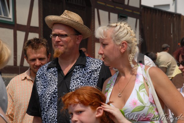 Der Veranstalter Golden Oldies ist stolz von abermals 70000 Zuschauer an 3 Tagen. Hier bei KFZ-Kultur.de sehen Sie 600 Bilder Fotos vom Samstag, den 26.7.2008 Vom 25. bis 27. Juli 2008 in Wettenberg 19. Festival Golden Oldies- Eine hessische Gemeinde auf Zeitreise in die Wirtschaftswunderzeit der 50er und 60er 3 Tage - 9 Bühnen - 50 Livebands - über 1.000 Oldtimer und 70.000 Besucher Musik & Motoren beim Festival Golden Oldies im Schatten der Burg Gleiberg Das mittelhessische Wettenberg wird zum 19. Mail für drei Tage „Deutschlands Hauptstadt der Oldiemusik“. Auf 9 Bühnen präsentieren rund 50 Musikgruppen Schlager, Beat, Soul, und Rock’n’Roll im Schatten der Burg Gleiberg. Eine atemberaubende Zeitreise in die 50er, 60er und 70er Jahre mit Deutschlands größter Oldtimer-Show. Das Motto in diesem Jahr: „Familie, Fortschritt & Souvenirs“ Das Festival hat Kultstatus und gehört zu den TOP Oldtimer Veranstaltungen in der Bundesrepublik. Was vor 18 Jahren mit nur 8 Bands, vier Bühnen und rund 3.000 begeisterten Fans begann, wurde inzwischen von der Fachpresse zu „Deutschlands schönster Oldiefete“ nominiert. Knapp 70.000 Besucher zählte das Festival im vergangenen Jahr. Mit Bus, Bahn und eigenem PKW reisen sie aus der gesamten Bundesrepublik und auch aus dem benachbarten Ausland an, um bei diesem Ereignis dabei zu sein. Golden Oldies bietet gleichermaßen Information und Unterhaltung zur Kulturgeschichte der vergangenen 50 Jahre. Von überregionalem Interesse ist bei Autoliebhabern die Ausstellung der rund 1.000 Klassikfahrzeuge am Sonntag, 27. Juli 2008 zu der private Fahrzeugbesitzer und über 50 Oldtimerclubs eingeladen sind.. Fahrzeuge, die zum Motto „Familie, Fortschritt Souvenirs“ passen, sind in diesem Jahr besonders gern gesehen, denn ihnen wird dieses Mal besondere Aufmerksamkeit gewidmet. Wiedersehen mit meinem ersten Auto: HEINRICH PUMPERNICKEL, alias Chris Howland. Er wird zum 19. Festival nach Wettenberg kommen, um ein Wiedersehen mit seinem 1. Auto zu feiern: Einem DKW 3=6, 2 türig fuhr "Mr. Pumpernickel" in den 50er Jahren Das Programm wird abgerundet durch zahlreiche Aktionen, Ausstellungen, ein umfangreiches Kinderprogramm und durch Deutschlands größten „Nostalgie Markt der 50er Jahre“. In rund 100 Verkaufsständen wird Originalware der sogenannten „Wirtschaftswunderzeit“ angeboten. Petticoats, Tulpenlampen, Schallplatten und Jukeboxen stehen in der Hauptstraße und in der Mehrzweckhalle zum Verkauf. Das Rockmuseum von Maria und Wolfgang Thomas stellt in der Mehrzweckhalle einen Querschnitt aus der Gesamtsammlung aus. Cruising der besonderen Art: Kinderwagen-Parade! Auf vier Rädern, 1 Fahrer(in) und meist nur mit einem Mitfahrer "belegt"... Am Samstag, dem 26. Juli 2008 gibt es ein Cruising der besonderen Art: Der Kostümverleih "Wundertüte" lädt ein, sich im Outfit der 50er/60er und mit einem Kinderwagen dieser Epoche zum Festivals Golden Oldies zu präsentieren und der „Deutsche Petticoat-Wettbewerb“ lädt alle Besucher des Festivals zu einer Zusammenkunft im Outfit der 50er bis 70er Jahre ein. Zusammengestellt wird das Festival von der Peter Turczak eventeam GmbH & Co KG. Unterstützt wird das Festival Golden Oldies von der Bitburger Brauerei, Neils & Kraft Mercedes Partner der Daimler-Chrysler AG, der Deutschen Bahn AG und der SFinanzgruppe Hessen-Thüringen. Nähere Informationen unter www.Golden-Oldies.de oder direkt bei der Gemeinde Wettenberg, 35435 Wettenberg, Telefon: 06 4 1 – 8 04 62