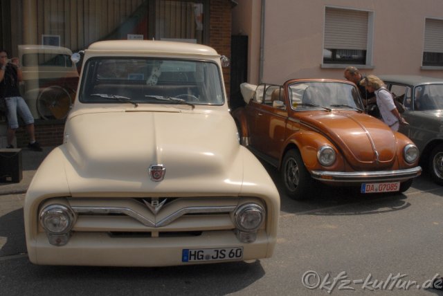 Der Veranstalter Golden Oldies ist stolz von abermals 70000 Zuschauer an 3 Tagen. Hier bei KFZ-Kultur.de sehen Sie 600 Bilder Fotos vom Samstag, den 26.7.2008 Vom 25. bis 27. Juli 2008 in Wettenberg 19. Festival Golden Oldies- Eine hessische Gemeinde auf Zeitreise in die Wirtschaftswunderzeit der 50er und 60er 3 Tage - 9 Bühnen - 50 Livebands - über 1.000 Oldtimer und 70.000 Besucher Musik & Motoren beim Festival Golden Oldies im Schatten der Burg Gleiberg Das mittelhessische Wettenberg wird zum 19. Mail für drei Tage „Deutschlands Hauptstadt der Oldiemusik“. Auf 9 Bühnen präsentieren rund 50 Musikgruppen Schlager, Beat, Soul, und Rock’n’Roll im Schatten der Burg Gleiberg. Eine atemberaubende Zeitreise in die 50er, 60er und 70er Jahre mit Deutschlands größter Oldtimer-Show. Das Motto in diesem Jahr: „Familie, Fortschritt & Souvenirs“ Das Festival hat Kultstatus und gehört zu den TOP Oldtimer Veranstaltungen in der Bundesrepublik. Was vor 18 Jahren mit nur 8 Bands, vier Bühnen und rund 3.000 begeisterten Fans begann, wurde inzwischen von der Fachpresse zu „Deutschlands schönster Oldiefete“ nominiert. Knapp 70.000 Besucher zählte das Festival im vergangenen Jahr. Mit Bus, Bahn und eigenem PKW reisen sie aus der gesamten Bundesrepublik und auch aus dem benachbarten Ausland an, um bei diesem Ereignis dabei zu sein. Golden Oldies bietet gleichermaßen Information und Unterhaltung zur Kulturgeschichte der vergangenen 50 Jahre. Von überregionalem Interesse ist bei Autoliebhabern die Ausstellung der rund 1.000 Klassikfahrzeuge am Sonntag, 27. Juli 2008 zu der private Fahrzeugbesitzer und über 50 Oldtimerclubs eingeladen sind.. Fahrzeuge, die zum Motto „Familie, Fortschritt Souvenirs“ passen, sind in diesem Jahr besonders gern gesehen, denn ihnen wird dieses Mal besondere Aufmerksamkeit gewidmet. Wiedersehen mit meinem ersten Auto: HEINRICH PUMPERNICKEL, alias Chris Howland. Er wird zum 19. Festival nach Wettenberg kommen, um ein Wiedersehen mit seinem 1. Auto zu feiern: Einem DKW 3=6, 2 türig fuhr "Mr. Pumpernickel" in den 50er Jahren Das Programm wird abgerundet durch zahlreiche Aktionen, Ausstellungen, ein umfangreiches Kinderprogramm und durch Deutschlands größten „Nostalgie Markt der 50er Jahre“. In rund 100 Verkaufsständen wird Originalware der sogenannten „Wirtschaftswunderzeit“ angeboten. Petticoats, Tulpenlampen, Schallplatten und Jukeboxen stehen in der Hauptstraße und in der Mehrzweckhalle zum Verkauf. Das Rockmuseum von Maria und Wolfgang Thomas stellt in der Mehrzweckhalle einen Querschnitt aus der Gesamtsammlung aus. Cruising der besonderen Art: Kinderwagen-Parade! Auf vier Rädern, 1 Fahrer(in) und meist nur mit einem Mitfahrer "belegt"... Am Samstag, dem 26. Juli 2008 gibt es ein Cruising der besonderen Art: Der Kostümverleih "Wundertüte" lädt ein, sich im Outfit der 50er/60er und mit einem Kinderwagen dieser Epoche zum Festivals Golden Oldies zu präsentieren und der „Deutsche Petticoat-Wettbewerb“ lädt alle Besucher des Festivals zu einer Zusammenkunft im Outfit der 50er bis 70er Jahre ein. Zusammengestellt wird das Festival von der Peter Turczak eventeam GmbH & Co KG. Unterstützt wird das Festival Golden Oldies von der Bitburger Brauerei, Neils & Kraft Mercedes Partner der Daimler-Chrysler AG, der Deutschen Bahn AG und der SFinanzgruppe Hessen-Thüringen. Nähere Informationen unter www.Golden-Oldies.de oder direkt bei der Gemeinde Wettenberg, 35435 Wettenberg, Telefon: 06 4 1 – 8 04 62