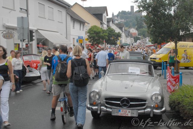 Der Veranstalter Golden Oldies ist stolz von abermals 70000 Zuschauer an 3 Tagen. Hier bei KFZ-Kultur.de sehen Sie 600 Bilder Fotos vom Samstag, den 26.7.2008 Vom 25. bis 27. Juli 2008 in Wettenberg 19. Festival Golden Oldies- Eine hessische Gemeinde auf Zeitreise in die Wirtschaftswunderzeit der 50er und 60er 3 Tage - 9 Bühnen - 50 Livebands - über 1.000 Oldtimer und 70.000 Besucher Musik & Motoren beim Festival Golden Oldies im Schatten der Burg Gleiberg Das mittelhessische Wettenberg wird zum 19. Mail für drei Tage „Deutschlands Hauptstadt der Oldiemusik“. Auf 9 Bühnen präsentieren rund 50 Musikgruppen Schlager, Beat, Soul, und Rock’n’Roll im Schatten der Burg Gleiberg. Eine atemberaubende Zeitreise in die 50er, 60er und 70er Jahre mit Deutschlands größter Oldtimer-Show. Das Motto in diesem Jahr: „Familie, Fortschritt & Souvenirs“ Das Festival hat Kultstatus und gehört zu den TOP Oldtimer Veranstaltungen in der Bundesrepublik. Was vor 18 Jahren mit nur 8 Bands, vier Bühnen und rund 3.000 begeisterten Fans begann, wurde inzwischen von der Fachpresse zu „Deutschlands schönster Oldiefete“ nominiert. Knapp 70.000 Besucher zählte das Festival im vergangenen Jahr. Mit Bus, Bahn und eigenem PKW reisen sie aus der gesamten Bundesrepublik und auch aus dem benachbarten Ausland an, um bei diesem Ereignis dabei zu sein. Golden Oldies bietet gleichermaßen Information und Unterhaltung zur Kulturgeschichte der vergangenen 50 Jahre. Von überregionalem Interesse ist bei Autoliebhabern die Ausstellung der rund 1.000 Klassikfahrzeuge am Sonntag, 27. Juli 2008 zu der private Fahrzeugbesitzer und über 50 Oldtimerclubs eingeladen sind.. Fahrzeuge, die zum Motto „Familie, Fortschritt Souvenirs“ passen, sind in diesem Jahr besonders gern gesehen, denn ihnen wird dieses Mal besondere Aufmerksamkeit gewidmet. Wiedersehen mit meinem ersten Auto: HEINRICH PUMPERNICKEL, alias Chris Howland. Er wird zum 19. Festival nach Wettenberg kommen, um ein Wiedersehen mit seinem 1. Auto zu feiern: Einem DKW 3=6, 2 türig fuhr "Mr. Pumpernickel" in den 50er Jahren Das Programm wird abgerundet durch zahlreiche Aktionen, Ausstellungen, ein umfangreiches Kinderprogramm und durch Deutschlands größten „Nostalgie Markt der 50er Jahre“. In rund 100 Verkaufsständen wird Originalware der sogenannten „Wirtschaftswunderzeit“ angeboten. Petticoats, Tulpenlampen, Schallplatten und Jukeboxen stehen in der Hauptstraße und in der Mehrzweckhalle zum Verkauf. Das Rockmuseum von Maria und Wolfgang Thomas stellt in der Mehrzweckhalle einen Querschnitt aus der Gesamtsammlung aus. Cruising der besonderen Art: Kinderwagen-Parade! Auf vier Rädern, 1 Fahrer(in) und meist nur mit einem Mitfahrer "belegt"... Am Samstag, dem 26. Juli 2008 gibt es ein Cruising der besonderen Art: Der Kostümverleih "Wundertüte" lädt ein, sich im Outfit der 50er/60er und mit einem Kinderwagen dieser Epoche zum Festivals Golden Oldies zu präsentieren und der „Deutsche Petticoat-Wettbewerb“ lädt alle Besucher des Festivals zu einer Zusammenkunft im Outfit der 50er bis 70er Jahre ein. Zusammengestellt wird das Festival von der Peter Turczak eventeam GmbH & Co KG. Unterstützt wird das Festival Golden Oldies von der Bitburger Brauerei, Neils & Kraft Mercedes Partner der Daimler-Chrysler AG, der Deutschen Bahn AG und der SFinanzgruppe Hessen-Thüringen. Nähere Informationen unter www.Golden-Oldies.de oder direkt bei der Gemeinde Wettenberg, 35435 Wettenberg, Telefon: 06 4 1 – 8 04 62