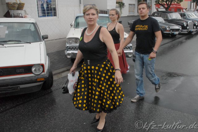 Der Veranstalter Golden Oldies ist stolz von abermals 70000 Zuschauer an 3 Tagen. Hier bei KFZ-Kultur.de sehen Sie 600 Bilder Fotos vom Samstag, den 26.7.2008 Vom 25. bis 27. Juli 2008 in Wettenberg 19. Festival Golden Oldies- Eine hessische Gemeinde auf Zeitreise in die Wirtschaftswunderzeit der 50er und 60er 3 Tage - 9 Bühnen - 50 Livebands - über 1.000 Oldtimer und 70.000 Besucher Musik & Motoren beim Festival Golden Oldies im Schatten der Burg Gleiberg Das mittelhessische Wettenberg wird zum 19. Mail für drei Tage „Deutschlands Hauptstadt der Oldiemusik“. Auf 9 Bühnen präsentieren rund 50 Musikgruppen Schlager, Beat, Soul, und Rock’n’Roll im Schatten der Burg Gleiberg. Eine atemberaubende Zeitreise in die 50er, 60er und 70er Jahre mit Deutschlands größter Oldtimer-Show. Das Motto in diesem Jahr: „Familie, Fortschritt & Souvenirs“ Das Festival hat Kultstatus und gehört zu den TOP Oldtimer Veranstaltungen in der Bundesrepublik. Was vor 18 Jahren mit nur 8 Bands, vier Bühnen und rund 3.000 begeisterten Fans begann, wurde inzwischen von der Fachpresse zu „Deutschlands schönster Oldiefete“ nominiert. Knapp 70.000 Besucher zählte das Festival im vergangenen Jahr. Mit Bus, Bahn und eigenem PKW reisen sie aus der gesamten Bundesrepublik und auch aus dem benachbarten Ausland an, um bei diesem Ereignis dabei zu sein. Golden Oldies bietet gleichermaßen Information und Unterhaltung zur Kulturgeschichte der vergangenen 50 Jahre. Von überregionalem Interesse ist bei Autoliebhabern die Ausstellung der rund 1.000 Klassikfahrzeuge am Sonntag, 27. Juli 2008 zu der private Fahrzeugbesitzer und über 50 Oldtimerclubs eingeladen sind.. Fahrzeuge, die zum Motto „Familie, Fortschritt Souvenirs“ passen, sind in diesem Jahr besonders gern gesehen, denn ihnen wird dieses Mal besondere Aufmerksamkeit gewidmet. Wiedersehen mit meinem ersten Auto: HEINRICH PUMPERNICKEL, alias Chris Howland. Er wird zum 19. Festival nach Wettenberg kommen, um ein Wiedersehen mit seinem 1. Auto zu feiern: Einem DKW 3=6, 2 türig fuhr "Mr. Pumpernickel" in den 50er Jahren Das Programm wird abgerundet durch zahlreiche Aktionen, Ausstellungen, ein umfangreiches Kinderprogramm und durch Deutschlands größten „Nostalgie Markt der 50er Jahre“. In rund 100 Verkaufsständen wird Originalware der sogenannten „Wirtschaftswunderzeit“ angeboten. Petticoats, Tulpenlampen, Schallplatten und Jukeboxen stehen in der Hauptstraße und in der Mehrzweckhalle zum Verkauf. Das Rockmuseum von Maria und Wolfgang Thomas stellt in der Mehrzweckhalle einen Querschnitt aus der Gesamtsammlung aus. Cruising der besonderen Art: Kinderwagen-Parade! Auf vier Rädern, 1 Fahrer(in) und meist nur mit einem Mitfahrer "belegt"... Am Samstag, dem 26. Juli 2008 gibt es ein Cruising der besonderen Art: Der Kostümverleih "Wundertüte" lädt ein, sich im Outfit der 50er/60er und mit einem Kinderwagen dieser Epoche zum Festivals Golden Oldies zu präsentieren und der „Deutsche Petticoat-Wettbewerb“ lädt alle Besucher des Festivals zu einer Zusammenkunft im Outfit der 50er bis 70er Jahre ein. Zusammengestellt wird das Festival von der Peter Turczak eventeam GmbH & Co KG. Unterstützt wird das Festival Golden Oldies von der Bitburger Brauerei, Neils & Kraft Mercedes Partner der Daimler-Chrysler AG, der Deutschen Bahn AG und der SFinanzgruppe Hessen-Thüringen. Nähere Informationen unter www.Golden-Oldies.de oder direkt bei der Gemeinde Wettenberg, 35435 Wettenberg, Telefon: 06 4 1 – 8 04 62