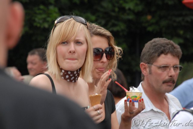 Der Veranstalter Golden Oldies ist stolz von abermals 70000 Zuschauer an 3 Tagen. Hier bei KFZ-Kultur.de sehen Sie 600 Bilder Fotos vom Samstag, den 26.7.2008 Vom 25. bis 27. Juli 2008 in Wettenberg 19. Festival Golden Oldies- Eine hessische Gemeinde auf Zeitreise in die Wirtschaftswunderzeit der 50er und 60er 3 Tage - 9 Bühnen - 50 Livebands - über 1.000 Oldtimer und 70.000 Besucher Musik & Motoren beim Festival Golden Oldies im Schatten der Burg Gleiberg Das mittelhessische Wettenberg wird zum 19. Mail für drei Tage „Deutschlands Hauptstadt der Oldiemusik“. Auf 9 Bühnen präsentieren rund 50 Musikgruppen Schlager, Beat, Soul, und Rock’n’Roll im Schatten der Burg Gleiberg. Eine atemberaubende Zeitreise in die 50er, 60er und 70er Jahre mit Deutschlands größter Oldtimer-Show. Das Motto in diesem Jahr: „Familie, Fortschritt & Souvenirs“ Das Festival hat Kultstatus und gehört zu den TOP Oldtimer Veranstaltungen in der Bundesrepublik. Was vor 18 Jahren mit nur 8 Bands, vier Bühnen und rund 3.000 begeisterten Fans begann, wurde inzwischen von der Fachpresse zu „Deutschlands schönster Oldiefete“ nominiert. Knapp 70.000 Besucher zählte das Festival im vergangenen Jahr. Mit Bus, Bahn und eigenem PKW reisen sie aus der gesamten Bundesrepublik und auch aus dem benachbarten Ausland an, um bei diesem Ereignis dabei zu sein. Golden Oldies bietet gleichermaßen Information und Unterhaltung zur Kulturgeschichte der vergangenen 50 Jahre. Von überregionalem Interesse ist bei Autoliebhabern die Ausstellung der rund 1.000 Klassikfahrzeuge am Sonntag, 27. Juli 2008 zu der private Fahrzeugbesitzer und über 50 Oldtimerclubs eingeladen sind.. Fahrzeuge, die zum Motto „Familie, Fortschritt Souvenirs“ passen, sind in diesem Jahr besonders gern gesehen, denn ihnen wird dieses Mal besondere Aufmerksamkeit gewidmet. Wiedersehen mit meinem ersten Auto: HEINRICH PUMPERNICKEL, alias Chris Howland. Er wird zum 19. Festival nach Wettenberg kommen, um ein Wiedersehen mit seinem 1. Auto zu feiern: Einem DKW 3=6, 2 türig fuhr "Mr. Pumpernickel" in den 50er Jahren Das Programm wird abgerundet durch zahlreiche Aktionen, Ausstellungen, ein umfangreiches Kinderprogramm und durch Deutschlands größten „Nostalgie Markt der 50er Jahre“. In rund 100 Verkaufsständen wird Originalware der sogenannten „Wirtschaftswunderzeit“ angeboten. Petticoats, Tulpenlampen, Schallplatten und Jukeboxen stehen in der Hauptstraße und in der Mehrzweckhalle zum Verkauf. Das Rockmuseum von Maria und Wolfgang Thomas stellt in der Mehrzweckhalle einen Querschnitt aus der Gesamtsammlung aus. Cruising der besonderen Art: Kinderwagen-Parade! Auf vier Rädern, 1 Fahrer(in) und meist nur mit einem Mitfahrer "belegt"... Am Samstag, dem 26. Juli 2008 gibt es ein Cruising der besonderen Art: Der Kostümverleih "Wundertüte" lädt ein, sich im Outfit der 50er/60er und mit einem Kinderwagen dieser Epoche zum Festivals Golden Oldies zu präsentieren und der „Deutsche Petticoat-Wettbewerb“ lädt alle Besucher des Festivals zu einer Zusammenkunft im Outfit der 50er bis 70er Jahre ein. Zusammengestellt wird das Festival von der Peter Turczak eventeam GmbH & Co KG. Unterstützt wird das Festival Golden Oldies von der Bitburger Brauerei, Neils & Kraft Mercedes Partner der Daimler-Chrysler AG, der Deutschen Bahn AG und der SFinanzgruppe Hessen-Thüringen. Nähere Informationen unter www.Golden-Oldies.de oder direkt bei der Gemeinde Wettenberg, 35435 Wettenberg, Telefon: 06 4 1 – 8 04 62