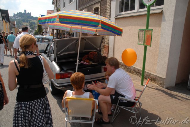 Der Veranstalter Golden Oldies ist stolz von abermals 70000 Zuschauer an 3 Tagen. Hier bei KFZ-Kultur.de sehen Sie 600 Bilder Fotos vom Samstag, den 26.7.2008 Vom 25. bis 27. Juli 2008 in Wettenberg 19. Festival Golden Oldies- Eine hessische Gemeinde auf Zeitreise in die Wirtschaftswunderzeit der 50er und 60er 3 Tage - 9 Bühnen - 50 Livebands - über 1.000 Oldtimer und 70.000 Besucher Musik & Motoren beim Festival Golden Oldies im Schatten der Burg Gleiberg Das mittelhessische Wettenberg wird zum 19. Mail für drei Tage „Deutschlands Hauptstadt der Oldiemusik“. Auf 9 Bühnen präsentieren rund 50 Musikgruppen Schlager, Beat, Soul, und Rock’n’Roll im Schatten der Burg Gleiberg. Eine atemberaubende Zeitreise in die 50er, 60er und 70er Jahre mit Deutschlands größter Oldtimer-Show. Das Motto in diesem Jahr: „Familie, Fortschritt & Souvenirs“ Das Festival hat Kultstatus und gehört zu den TOP Oldtimer Veranstaltungen in der Bundesrepublik. Was vor 18 Jahren mit nur 8 Bands, vier Bühnen und rund 3.000 begeisterten Fans begann, wurde inzwischen von der Fachpresse zu „Deutschlands schönster Oldiefete“ nominiert. Knapp 70.000 Besucher zählte das Festival im vergangenen Jahr. Mit Bus, Bahn und eigenem PKW reisen sie aus der gesamten Bundesrepublik und auch aus dem benachbarten Ausland an, um bei diesem Ereignis dabei zu sein. Golden Oldies bietet gleichermaßen Information und Unterhaltung zur Kulturgeschichte der vergangenen 50 Jahre. Von überregionalem Interesse ist bei Autoliebhabern die Ausstellung der rund 1.000 Klassikfahrzeuge am Sonntag, 27. Juli 2008 zu der private Fahrzeugbesitzer und über 50 Oldtimerclubs eingeladen sind.. Fahrzeuge, die zum Motto „Familie, Fortschritt Souvenirs“ passen, sind in diesem Jahr besonders gern gesehen, denn ihnen wird dieses Mal besondere Aufmerksamkeit gewidmet. Wiedersehen mit meinem ersten Auto: HEINRICH PUMPERNICKEL, alias Chris Howland. Er wird zum 19. Festival nach Wettenberg kommen, um ein Wiedersehen mit seinem 1. Auto zu feiern: Einem DKW 3=6, 2 türig fuhr "Mr. Pumpernickel" in den 50er Jahren Das Programm wird abgerundet durch zahlreiche Aktionen, Ausstellungen, ein umfangreiches Kinderprogramm und durch Deutschlands größten „Nostalgie Markt der 50er Jahre“. In rund 100 Verkaufsständen wird Originalware der sogenannten „Wirtschaftswunderzeit“ angeboten. Petticoats, Tulpenlampen, Schallplatten und Jukeboxen stehen in der Hauptstraße und in der Mehrzweckhalle zum Verkauf. Das Rockmuseum von Maria und Wolfgang Thomas stellt in der Mehrzweckhalle einen Querschnitt aus der Gesamtsammlung aus. Cruising der besonderen Art: Kinderwagen-Parade! Auf vier Rädern, 1 Fahrer(in) und meist nur mit einem Mitfahrer "belegt"... Am Samstag, dem 26. Juli 2008 gibt es ein Cruising der besonderen Art: Der Kostümverleih "Wundertüte" lädt ein, sich im Outfit der 50er/60er und mit einem Kinderwagen dieser Epoche zum Festivals Golden Oldies zu präsentieren und der „Deutsche Petticoat-Wettbewerb“ lädt alle Besucher des Festivals zu einer Zusammenkunft im Outfit der 50er bis 70er Jahre ein. Zusammengestellt wird das Festival von der Peter Turczak eventeam GmbH & Co KG. Unterstützt wird das Festival Golden Oldies von der Bitburger Brauerei, Neils & Kraft Mercedes Partner der Daimler-Chrysler AG, der Deutschen Bahn AG und der SFinanzgruppe Hessen-Thüringen. Nähere Informationen unter www.Golden-Oldies.de oder direkt bei der Gemeinde Wettenberg, 35435 Wettenberg, Telefon: 06 4 1 – 8 04 62