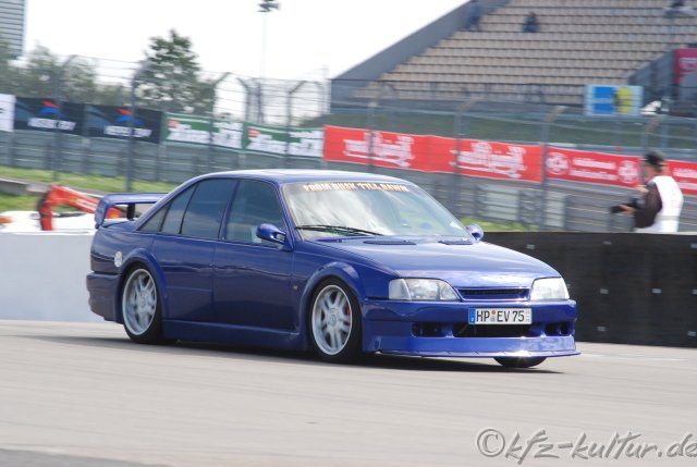"Das ist wunderbar hier", berichtet Schauspieler Rolf Zacher aus dem Cockpit des orangefarbenen DTM-Opel Omega.  Für ein Wochenende darf der Berliner seine Autoträume ausleben. "Ich liebe Limousinen", sagt Zacher. "Und mit 400 Pferdchen macht der Omega richtig Spaß". Die insgesamt 13 Fahrzeuge umspannen über 100 Jahre Motorsport-Geschichte. Am Steuer eines der ältesten Fahrzeuge der Präsentation sitzt der Vorsitzende der Geschäftsführung von Opel, Hans Demant: "Eine tolle Atmosphäre herrscht hier auf dem Nürburgring". Mit seinen Fahrerkollegen stellt er stolz die Fahrzeuge aus dem Opel-Werksmuseum vor. "Wir wollen alle Autos der Sammlung fahrbereit halten". Manuel Reuter steigt in seinen Opel Calibra, mit dem er vor 11 Jahren die ITC-Weltmeisterschaft gewann, einer der größten Opel-Erfolge. "Toll, dass der Calibra so gut in Schuss ist". Beim Fahren auf der Grand-Prix-Strecke des Nürburgrings werden beim 45-Jährigen Erinnerungen an die DTM der 90er Jahre wach. "Der Calibra ist so leistungsstark, dass er sich vor den modernen Autos nicht zu verstecken bräuchte".Im Fahrerlager ist der zweifache Le-Mans-Sieger vom sehr guten Zustand der Fahrzeuge begeistert.  "Das Fahren mit einem bestimmten Auto interessiert dabei weniger als die Technik und die Erhaltung der alten Rennwagen", sagt Reuter. Christian Geistdörfer fährt mit dem Opel Ascona 400 von 1982 auf die Strecke. An der Seite von Walter Röhrl feierte er mit diesem Fahrzeug die Rallye-Weltmeisterschaft. "Opel war damals den gegenüber den Mitbewerbern logistisch besser und standhafter", erzählt Geistdörfer. Wenn er nicht am Steuer des Weltmeisterautos sitzt oder im Interview am Opel-Zelt im Fahrerlager Rede und Antwort steht, geht er auf die Suche nach Automodellen. "Aber es gibt kaum noch Modelle, die ich nicht habe", so Geistdörfer. Für den stolzen Besitzer eines Ferrari 250 GT Pininfarina von 1959 ist der Besuch beim AvD-Oldtimer-Grand-Prix ein Muß. "Die Präsentation von Opel ist ein willkommener Anlaß zum Besuch in diesem Jahr".