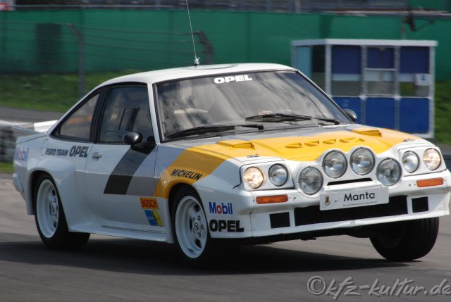 "Das ist wunderbar hier", berichtet Schauspieler Rolf Zacher aus dem Cockpit des orangefarbenen DTM-Opel Omega.  Für ein Wochenende darf der Berliner seine Autoträume ausleben. "Ich liebe Limousinen", sagt Zacher. "Und mit 400 Pferdchen macht der Omega richtig Spaß". Die insgesamt 13 Fahrzeuge umspannen über 100 Jahre Motorsport-Geschichte. Am Steuer eines der ältesten Fahrzeuge der Präsentation sitzt der Vorsitzende der Geschäftsführung von Opel, Hans Demant: "Eine tolle Atmosphäre herrscht hier auf dem Nürburgring". Mit seinen Fahrerkollegen stellt er stolz die Fahrzeuge aus dem Opel-Werksmuseum vor. "Wir wollen alle Autos der Sammlung fahrbereit halten". Manuel Reuter steigt in seinen Opel Calibra, mit dem er vor 11 Jahren die ITC-Weltmeisterschaft gewann, einer der größten Opel-Erfolge. "Toll, dass der Calibra so gut in Schuss ist". Beim Fahren auf der Grand-Prix-Strecke des Nürburgrings werden beim 45-Jährigen Erinnerungen an die DTM der 90er Jahre wach. "Der Calibra ist so leistungsstark, dass er sich vor den modernen Autos nicht zu verstecken bräuchte".Im Fahrerlager ist der zweifache Le-Mans-Sieger vom sehr guten Zustand der Fahrzeuge begeistert.  "Das Fahren mit einem bestimmten Auto interessiert dabei weniger als die Technik und die Erhaltung der alten Rennwagen", sagt Reuter. Christian Geistdörfer fährt mit dem Opel Ascona 400 von 1982 auf die Strecke. An der Seite von Walter Röhrl feierte er mit diesem Fahrzeug die Rallye-Weltmeisterschaft. "Opel war damals den gegenüber den Mitbewerbern logistisch besser und standhafter", erzählt Geistdörfer. Wenn er nicht am Steuer des Weltmeisterautos sitzt oder im Interview am Opel-Zelt im Fahrerlager Rede und Antwort steht, geht er auf die Suche nach Automodellen. "Aber es gibt kaum noch Modelle, die ich nicht habe", so Geistdörfer. Für den stolzen Besitzer eines Ferrari 250 GT Pininfarina von 1959 ist der Besuch beim AvD-Oldtimer-Grand-Prix ein Muß. "Die Präsentation von Opel ist ein willkommener Anlaß zum Besuch in diesem Jahr".