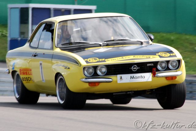"Das ist wunderbar hier", berichtet Schauspieler Rolf Zacher aus dem Cockpit des orangefarbenen DTM-Opel Omega.  Für ein Wochenende darf der Berliner seine Autoträume ausleben. "Ich liebe Limousinen", sagt Zacher. "Und mit 400 Pferdchen macht der Omega richtig Spaß". Die insgesamt 13 Fahrzeuge umspannen über 100 Jahre Motorsport-Geschichte. Am Steuer eines der ältesten Fahrzeuge der Präsentation sitzt der Vorsitzende der Geschäftsführung von Opel, Hans Demant: "Eine tolle Atmosphäre herrscht hier auf dem Nürburgring". Mit seinen Fahrerkollegen stellt er stolz die Fahrzeuge aus dem Opel-Werksmuseum vor. "Wir wollen alle Autos der Sammlung fahrbereit halten". Manuel Reuter steigt in seinen Opel Calibra, mit dem er vor 11 Jahren die ITC-Weltmeisterschaft gewann, einer der größten Opel-Erfolge. "Toll, dass der Calibra so gut in Schuss ist". Beim Fahren auf der Grand-Prix-Strecke des Nürburgrings werden beim 45-Jährigen Erinnerungen an die DTM der 90er Jahre wach. "Der Calibra ist so leistungsstark, dass er sich vor den modernen Autos nicht zu verstecken bräuchte".Im Fahrerlager ist der zweifache Le-Mans-Sieger vom sehr guten Zustand der Fahrzeuge begeistert.  "Das Fahren mit einem bestimmten Auto interessiert dabei weniger als die Technik und die Erhaltung der alten Rennwagen", sagt Reuter. Christian Geistdörfer fährt mit dem Opel Ascona 400 von 1982 auf die Strecke. An der Seite von Walter Röhrl feierte er mit diesem Fahrzeug die Rallye-Weltmeisterschaft. "Opel war damals den gegenüber den Mitbewerbern logistisch besser und standhafter", erzählt Geistdörfer. Wenn er nicht am Steuer des Weltmeisterautos sitzt oder im Interview am Opel-Zelt im Fahrerlager Rede und Antwort steht, geht er auf die Suche nach Automodellen. "Aber es gibt kaum noch Modelle, die ich nicht habe", so Geistdörfer. Für den stolzen Besitzer eines Ferrari 250 GT Pininfarina von 1959 ist der Besuch beim AvD-Oldtimer-Grand-Prix ein Muß. "Die Präsentation von Opel ist ein willkommener Anlaß zum Besuch in diesem Jahr".
