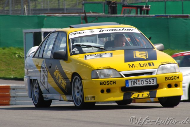 "Das ist wunderbar hier", berichtet Schauspieler Rolf Zacher aus dem Cockpit des orangefarbenen DTM-Opel Omega.  Für ein Wochenende darf der Berliner seine Autoträume ausleben. "Ich liebe Limousinen", sagt Zacher. "Und mit 400 Pferdchen macht der Omega richtig Spaß". Die insgesamt 13 Fahrzeuge umspannen über 100 Jahre Motorsport-Geschichte. Am Steuer eines der ältesten Fahrzeuge der Präsentation sitzt der Vorsitzende der Geschäftsführung von Opel, Hans Demant: "Eine tolle Atmosphäre herrscht hier auf dem Nürburgring". Mit seinen Fahrerkollegen stellt er stolz die Fahrzeuge aus dem Opel-Werksmuseum vor. "Wir wollen alle Autos der Sammlung fahrbereit halten". Manuel Reuter steigt in seinen Opel Calibra, mit dem er vor 11 Jahren die ITC-Weltmeisterschaft gewann, einer der größten Opel-Erfolge. "Toll, dass der Calibra so gut in Schuss ist". Beim Fahren auf der Grand-Prix-Strecke des Nürburgrings werden beim 45-Jährigen Erinnerungen an die DTM der 90er Jahre wach. "Der Calibra ist so leistungsstark, dass er sich vor den modernen Autos nicht zu verstecken bräuchte".Im Fahrerlager ist der zweifache Le-Mans-Sieger vom sehr guten Zustand der Fahrzeuge begeistert.  "Das Fahren mit einem bestimmten Auto interessiert dabei weniger als die Technik und die Erhaltung der alten Rennwagen", sagt Reuter. Christian Geistdörfer fährt mit dem Opel Ascona 400 von 1982 auf die Strecke. An der Seite von Walter Röhrl feierte er mit diesem Fahrzeug die Rallye-Weltmeisterschaft. "Opel war damals den gegenüber den Mitbewerbern logistisch besser und standhafter", erzählt Geistdörfer. Wenn er nicht am Steuer des Weltmeisterautos sitzt oder im Interview am Opel-Zelt im Fahrerlager Rede und Antwort steht, geht er auf die Suche nach Automodellen. "Aber es gibt kaum noch Modelle, die ich nicht habe", so Geistdörfer. Für den stolzen Besitzer eines Ferrari 250 GT Pininfarina von 1959 ist der Besuch beim AvD-Oldtimer-Grand-Prix ein Muß. "Die Präsentation von Opel ist ein willkommener Anlaß zum Besuch in diesem Jahr".