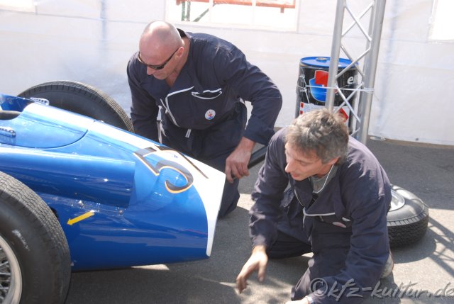 Nicht nur im Cockpit sondern auch hinter den Kulissen nutzen viele bekannte Gäste den 35.AvD-Oldtimer-Grand-Prix zum Besuch an der mittlerweile 80jährigen Traditions-Strecke in die Eifel. FIA-Formel-1-Cheftechniker Jo Bauer suchte die Boxen der historischen Formel-1-Wagen auf. "Ich bin beeindruckt vom sehr guten technischen Zustand der Autos", lobte Bauer. Der Saarbrücker machte Urlaub vom Formel 1-Streß. Dabei traf er auf Gordon Coppuck, den McLaren-Konstrukteur der 70er Jahre. Der heute 70-Jährige war verantwortlich unter anderem für den McLaren M23, mit dem Emerson Fittipaldi und James Hunt Weltmeister wurden. "Für mich ist es ein tolles Wochenende", freute sich der Ex-McLaren-Mitarbeiter. Denn Joaquin Folch-Rusinol (E) gewann mit dem Ex-Fittipaldi-Auto beide Rennen beim 35. AvD-Oldtimer-Grand-Prix. Außerdem waren die ehemaligen Can-Am-Autos im ORWELL SuperSports Cup erfolgreich. "Es ist eine sehr schöne Veranstaltung: im nächsten Jahr komme ich wieder" sagte Coppuck, der seit 1965 für McLaren arbeitete. Rennlegende David Piper schwelgte in Erinnerungen an Juan Manuel Fangio, an dessen legendären Formel-1-Erfolg vor 50 Jahren auf dem Nürburgring erinnert wurde. "Fangio war nicht nur sehr erfolgreich, er war mit seiner Bekleidung auch Trendsetter", sagte der 77-Jährige, der direkt vom 100jährigen Jubiläum des Vanderbuilt Cup in den USA zum Nürburgring kam. "Leider musste ich meinen Mechanikern mal Urlaub geben". Der neue AvD-Sportpräsident Volker Strycek fand selbst keine Zeit, ins Lenkrad zu greifen. Er verfolgte aufmerksam die Rennen, überreichte die Pokale an die erfolgreichen Piloten bei Siegerehrung und führte viele Gespräche mit Fahrern. Voll im Rampenlicht stand aber Stryceks Schätzchen im Fahrerlager: ein roter Opel Olympia- Rekord von 1957. Beim AvD-Oldtimer-Grand-Prix lautet das Motto: "The cars are the stars".