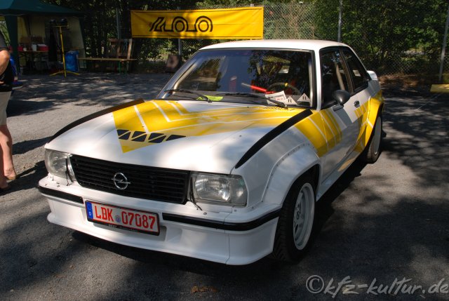 "Das ist wunderbar hier", berichtet Schauspieler Rolf Zacher aus dem Cockpit des orangefarbenen DTM-Opel Omega.  Für ein Wochenende darf der Berliner seine Autoträume ausleben. "Ich liebe Limousinen", sagt Zacher. "Und mit 400 Pferdchen macht der Omega richtig Spaß". Die insgesamt 13 Fahrzeuge umspannen über 100 Jahre Motorsport-Geschichte. Am Steuer eines der ältesten Fahrzeuge der Präsentation sitzt der Vorsitzende der Geschäftsführung von Opel, Hans Demant: "Eine tolle Atmosphäre herrscht hier auf dem Nürburgring". Mit seinen Fahrerkollegen stellt er stolz die Fahrzeuge aus dem Opel-Werksmuseum vor. "Wir wollen alle Autos der Sammlung fahrbereit halten". Manuel Reuter steigt in seinen Opel Calibra, mit dem er vor 11 Jahren die ITC-Weltmeisterschaft gewann, einer der größten Opel-Erfolge. "Toll, dass der Calibra so gut in Schuss ist". Beim Fahren auf der Grand-Prix-Strecke des Nürburgrings werden beim 45-Jährigen Erinnerungen an die DTM der 90er Jahre wach. "Der Calibra ist so leistungsstark, dass er sich vor den modernen Autos nicht zu verstecken bräuchte".Im Fahrerlager ist der zweifache Le-Mans-Sieger vom sehr guten Zustand der Fahrzeuge begeistert.  "Das Fahren mit einem bestimmten Auto interessiert dabei weniger als die Technik und die Erhaltung der alten Rennwagen", sagt Reuter. Christian Geistdörfer fährt mit dem Opel Ascona 400 von 1982 auf die Strecke. An der Seite von Walter Röhrl feierte er mit diesem Fahrzeug die Rallye-Weltmeisterschaft. "Opel war damals den gegenüber den Mitbewerbern logistisch besser und standhafter", erzählt Geistdörfer. Wenn er nicht am Steuer des Weltmeisterautos sitzt oder im Interview am Opel-Zelt im Fahrerlager Rede und Antwort steht, geht er auf die Suche nach Automodellen. "Aber es gibt kaum noch Modelle, die ich nicht habe", so Geistdörfer. Für den stolzen Besitzer eines Ferrari 250 GT Pininfarina von 1959 ist der Besuch beim AvD-Oldtimer-Grand-Prix ein Muß. "Die Präsentation von Opel ist ein willkommener Anlaß zum Besuch in diesem Jahr".