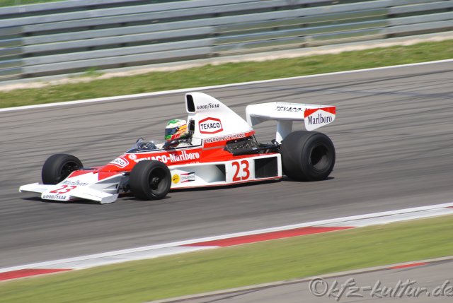 Nicht nur im Cockpit sondern auch hinter den Kulissen nutzen viele bekannte Gäste den 35.AvD-Oldtimer-Grand-Prix zum Besuch an der mittlerweile 80jährigen Traditions-Strecke in die Eifel. FIA-Formel-1-Cheftechniker Jo Bauer suchte die Boxen der historischen Formel-1-Wagen auf. "Ich bin beeindruckt vom sehr guten technischen Zustand der Autos", lobte Bauer. Der Saarbrücker machte Urlaub vom Formel 1-Streß. Dabei traf er auf Gordon Coppuck, den McLaren-Konstrukteur der 70er Jahre. Der heute 70-Jährige war verantwortlich unter anderem für den McLaren M23, mit dem Emerson Fittipaldi und James Hunt Weltmeister wurden. "Für mich ist es ein tolles Wochenende", freute sich der Ex-McLaren-Mitarbeiter. Denn Joaquin Folch-Rusinol (E) gewann mit dem Ex-Fittipaldi-Auto beide Rennen beim 35. AvD-Oldtimer-Grand-Prix. Außerdem waren die ehemaligen Can-Am-Autos im ORWELL SuperSports Cup erfolgreich. "Es ist eine sehr schöne Veranstaltung: im nächsten Jahr komme ich wieder" sagte Coppuck, der seit 1965 für McLaren arbeitete. Rennlegende David Piper schwelgte in Erinnerungen an Juan Manuel Fangio, an dessen legendären Formel-1-Erfolg vor 50 Jahren auf dem Nürburgring erinnert wurde. "Fangio war nicht nur sehr erfolgreich, er war mit seiner Bekleidung auch Trendsetter", sagte der 77-Jährige, der direkt vom 100jährigen Jubiläum des Vanderbuilt Cup in den USA zum Nürburgring kam. "Leider musste ich meinen Mechanikern mal Urlaub geben". Der neue AvD-Sportpräsident Volker Strycek fand selbst keine Zeit, ins Lenkrad zu greifen. Er verfolgte aufmerksam die Rennen, überreichte die Pokale an die erfolgreichen Piloten bei Siegerehrung und führte viele Gespräche mit Fahrern. Voll im Rampenlicht stand aber Stryceks Schätzchen im Fahrerlager: ein roter Opel Olympia- Rekord von 1957. Beim AvD-Oldtimer-Grand-Prix lautet das Motto: "The cars are the stars".