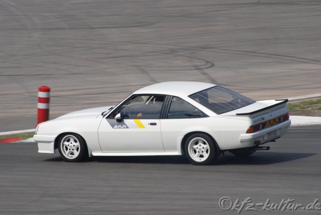 "Das ist wunderbar hier", berichtet Schauspieler Rolf Zacher aus dem Cockpit des orangefarbenen DTM-Opel Omega.  Für ein Wochenende darf der Berliner seine Autoträume ausleben. "Ich liebe Limousinen", sagt Zacher. "Und mit 400 Pferdchen macht der Omega richtig Spaß". Die insgesamt 13 Fahrzeuge umspannen über 100 Jahre Motorsport-Geschichte. Am Steuer eines der ältesten Fahrzeuge der Präsentation sitzt der Vorsitzende der Geschäftsführung von Opel, Hans Demant: "Eine tolle Atmosphäre herrscht hier auf dem Nürburgring". Mit seinen Fahrerkollegen stellt er stolz die Fahrzeuge aus dem Opel-Werksmuseum vor. "Wir wollen alle Autos der Sammlung fahrbereit halten". Manuel Reuter steigt in seinen Opel Calibra, mit dem er vor 11 Jahren die ITC-Weltmeisterschaft gewann, einer der größten Opel-Erfolge. "Toll, dass der Calibra so gut in Schuss ist". Beim Fahren auf der Grand-Prix-Strecke des Nürburgrings werden beim 45-Jährigen Erinnerungen an die DTM der 90er Jahre wach. "Der Calibra ist so leistungsstark, dass er sich vor den modernen Autos nicht zu verstecken bräuchte".Im Fahrerlager ist der zweifache Le-Mans-Sieger vom sehr guten Zustand der Fahrzeuge begeistert.  "Das Fahren mit einem bestimmten Auto interessiert dabei weniger als die Technik und die Erhaltung der alten Rennwagen", sagt Reuter. Christian Geistdörfer fährt mit dem Opel Ascona 400 von 1982 auf die Strecke. An der Seite von Walter Röhrl feierte er mit diesem Fahrzeug die Rallye-Weltmeisterschaft. "Opel war damals den gegenüber den Mitbewerbern logistisch besser und standhafter", erzählt Geistdörfer. Wenn er nicht am Steuer des Weltmeisterautos sitzt oder im Interview am Opel-Zelt im Fahrerlager Rede und Antwort steht, geht er auf die Suche nach Automodellen. "Aber es gibt kaum noch Modelle, die ich nicht habe", so Geistdörfer. Für den stolzen Besitzer eines Ferrari 250 GT Pininfarina von 1959 ist der Besuch beim AvD-Oldtimer-Grand-Prix ein Muß. "Die Präsentation von Opel ist ein willkommener Anlaß zum Besuch in diesem Jahr".