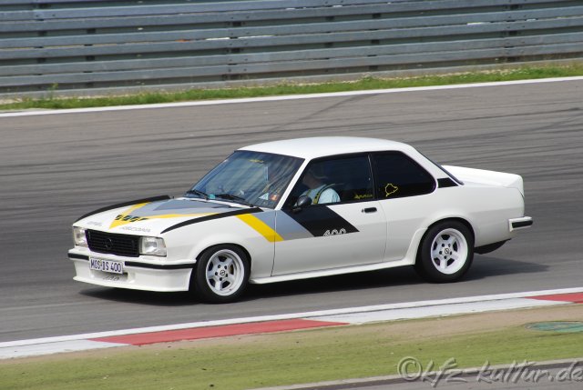 "Das ist wunderbar hier", berichtet Schauspieler Rolf Zacher aus dem Cockpit des orangefarbenen DTM-Opel Omega.  Für ein Wochenende darf der Berliner seine Autoträume ausleben. "Ich liebe Limousinen", sagt Zacher. "Und mit 400 Pferdchen macht der Omega richtig Spaß". Die insgesamt 13 Fahrzeuge umspannen über 100 Jahre Motorsport-Geschichte. Am Steuer eines der ältesten Fahrzeuge der Präsentation sitzt der Vorsitzende der Geschäftsführung von Opel, Hans Demant: "Eine tolle Atmosphäre herrscht hier auf dem Nürburgring". Mit seinen Fahrerkollegen stellt er stolz die Fahrzeuge aus dem Opel-Werksmuseum vor. "Wir wollen alle Autos der Sammlung fahrbereit halten". Manuel Reuter steigt in seinen Opel Calibra, mit dem er vor 11 Jahren die ITC-Weltmeisterschaft gewann, einer der größten Opel-Erfolge. "Toll, dass der Calibra so gut in Schuss ist". Beim Fahren auf der Grand-Prix-Strecke des Nürburgrings werden beim 45-Jährigen Erinnerungen an die DTM der 90er Jahre wach. "Der Calibra ist so leistungsstark, dass er sich vor den modernen Autos nicht zu verstecken bräuchte".Im Fahrerlager ist der zweifache Le-Mans-Sieger vom sehr guten Zustand der Fahrzeuge begeistert.  "Das Fahren mit einem bestimmten Auto interessiert dabei weniger als die Technik und die Erhaltung der alten Rennwagen", sagt Reuter. Christian Geistdörfer fährt mit dem Opel Ascona 400 von 1982 auf die Strecke. An der Seite von Walter Röhrl feierte er mit diesem Fahrzeug die Rallye-Weltmeisterschaft. "Opel war damals den gegenüber den Mitbewerbern logistisch besser und standhafter", erzählt Geistdörfer. Wenn er nicht am Steuer des Weltmeisterautos sitzt oder im Interview am Opel-Zelt im Fahrerlager Rede und Antwort steht, geht er auf die Suche nach Automodellen. "Aber es gibt kaum noch Modelle, die ich nicht habe", so Geistdörfer. Für den stolzen Besitzer eines Ferrari 250 GT Pininfarina von 1959 ist der Besuch beim AvD-Oldtimer-Grand-Prix ein Muß. "Die Präsentation von Opel ist ein willkommener Anlaß zum Besuch in diesem Jahr".