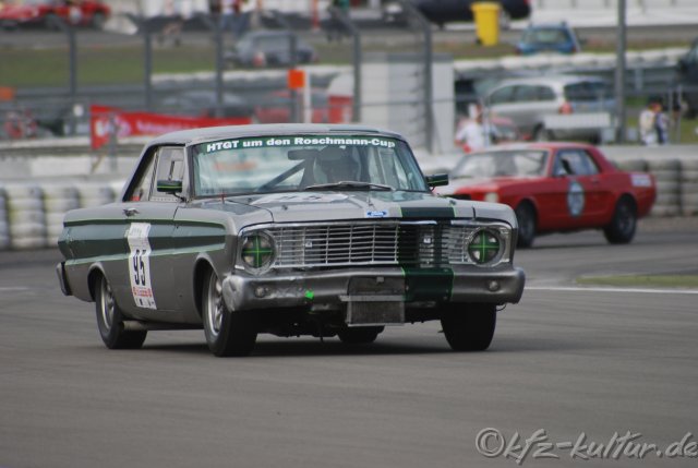 Historische Tourenwagen gehören zum AvD-Oldtimer-Grand-Prix wie die Butter zum Brot. Die rennenden Limousinen bis 1965 sind Ahnen der Autos, die aktuell in der Tourenwagen-Weltmeisterschaft eingesetzt werden. Seit 1984 sind die HTGT um den Roschmann-Cup und ihre Vorgängerserien ein Garant für ein breitgefächertes Feld dieser Fahrzeuge. Vom BMW 700 bis zum Ford Falcon, vom Volvo Amazon bis zum Alfa Romeo GTA sind alle Modelle vertreten, die bis 1965 Tourenwagen-Geschichte schrieben.Für Albert Matthias (LUX) ist die Startnummer 80 kein Zufall. Der Flugzeug-Ingenieur startet mit einem Volvo Amazon, den er von Rennlegende Freddy Kottulinsky kaufte. "In diesem Jahr feiert Volvo sein 80jähriges Firmenjubiläum, da passt die Startnummer". Seit 40 Jahren ist Matthias Volvo-Fahrer, seit zehn Jahren ist er in der HTGT aktiv. Zu diesem Anlaß brachte der Volvo-Fans auch seinen PV 544 mit zum AvD-Oldtimer-Grand-Prix. Der Buckel-Volvo wird von Landsmann Georg Ettinger gefahren. Im ersten Rennen lief es gut für das Jubiläums-Team: Platz drei für den Amazon, Platz fünf für den "Buckel" in der Klasse.Die Gesamtwertung entschied Stephen Perry (Hockenheim) im Ford Falcon Sprint für sich. Nach einem besonders in der Anfangsphase spannenden Kampf verwies er reinhold Gröpper (Paderborn) im Ford Mustang auf den zweiten Platz. Dominik Roschmann (Gersthofen) schaffte im Alfa Romeo GTA den Sprung aufs Treppchen. Spannend bis in die letzten Runde war der Kampf der Mini Cooper S: Herbert Wein (Mainz) fing den bis dahin Führenden  Rainer Klockenhoff (Bad Schwalbach) noch in der letzten Runde ab. Der Mainzer hetzte mit 0,1 Sekunden Vorsprung die Ziellinie und sicherte sich die volle Punktzahl für die AvD-Clubmeisterschaft. HTGT um den Roschmann-Cup Die 50 Starter der HTGT um den Roschmann-Cup starteten unter dem Namen AvD-Nürburgringring-Trophäe. Das ist der historische Name des Rahmenrennens zum Großen Preis von Deutschland in den 60er Jahren.