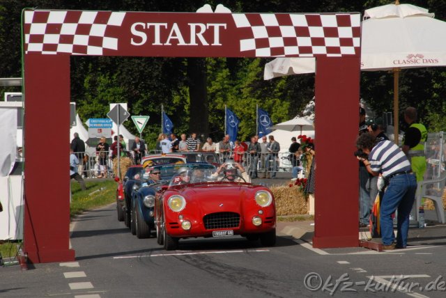 Highlights 2008 waren die Besuche der bekannten Rennfahrer Jochen Mass, Hans Herrmann, Bernd Schneider, Hans Joachim Stuck bei den Classic Days. Schloss Dyck Mit Mercedes Benz feiern die Classic Days am Schloss Dyck im Jahr 2008 das Jubiläum zum Thema „100 Jahre Grand Prix-Erfolge“. Insgesamt vier Formel 1 Boliden sind am Schloss zu sehen, aber auch der Benz 1908 mit dem Christian Lautenschlager 1908 den Grand Prix von Dieppe (F) gewann. Hans Herrmann fährt seinen „Dienstwagen“ – einen Silberpfeil W 196 aus dem Jahr 1955. Jochen Mass fährt den grossen Benz 1908 mit fast 14 Litern Hubraum, Bernd Schneider wird im Formel 1 von 1998, dem Weltmeisterfahrzeug MP4-13 von Mika Häkkinen, seine Kreise um das Schloss ziehen und Dieter Glemser fährt das AMG-F1-Safety-Car um die Rundstrecke vor den Ausfahrten den Rennfahrzeuge zu sichern. Toyota zeigt Rallye-Fahrzeuge (WRC) in einem Sonderlauf mit Isolde Holderied am Steuer. Und auch Jochen Berger ist – wie schon 2007 – wieder am Start. Die Autostadt aus Wolfsburg sendet aus dem Zeithaus sympathische Vertreter der „Volkswagen“ – aber auch das Pacecar für die Tangenten vom Schloss bis zum Startbereich – ein Polizei-VW –Special-Käfer Baujahr 1953. Schloss Dyck Porsche der Modelle 904, 907, 910 und auch sogar ein spektakulärer Porsche 956 (Ex- Fahrzeug von Ayrton Senna) begehen das Jubiläum „60 Jahre Porsche“ bei den Classic Days. Bei den Formel Monoposto aus den 50er und 60er Jahren startet Hans Jörg Goetzl von der Motor Klassik im Lotus 16 aus dem Besitz von Graham Hill. Mit Ihm sind über 15 weitere Monoposto am Start und das Feld wird noch ergänzt durch zusätzliche 20 Starter der HRA ( Graf Berghe von Trips Pokal des ADAC) , die an 80 Jahre Wolfgang Graf Berghe von Trips erinnern wollen. Eine Vielzahl von Fahrzeugen in dieser Kombination und Anzahl findet man sonst in vergleichbaren Veranstaltungen sicherlich nicht. Mehr Informationen finden Sie hier… Zusätzlich zu den Sonderläufen der Werksmuseen und Rennfahrer-Vereinigungen bringen wieder eine Vielzahl von Privat-Besitzern wunderschöne und seltene Fahrzeuge zum Schloss. Einige Highlights aus der Liste der startenden Fahrzeuge finden Sie hier… Ergänzt werden die Starts der Startergruppen im Bereich „Racing Legends“ durch eindrucksvolle Demonstrationsfahrten von Rennfahrzeugen aus Privatsammlungen und Werksmuseen.Seltene Fahrzeuge und solche, die nur äußerst selten auf der Rennstrecke in Bewegung zu sehen sind, geben sich ein Stelldichein und begeistern die Zuschauer. Es gibt ein „Neues Fahrerlager“, in dem Formelfahrzeuge, Rennsportwagen und Rennmotorräder zu sehen sein werden. Das Schloss selbst – mit seinen wundervollen Innenhöfen – wird zum „Alten Fahrerlager“ , in dem hauptsächliche die Vorkriegsfahrzeuge mit ihrer diffizilen Technik und spannender Rennhistorie untergebracht sein werden. Die Innenhöfe des Schlosses sind aus Gründen der Zuschauersicherheit während der Ein- und Ausfahrten der historischen Rennfahrzeuge für Fussgänger und Besucher nicht zugänglich, öffnen aber nach dem Rennbetrieb am späten Nachmittag und laden zum „Pitwalk“ ein. Für den Besuch der Innenhöfe während der Rennrunden steht ein zahlenmäßig begrenztes Kartenkontingent zur Verfügung. Das „Neue Fahrerlager“ bleibt im Jahr 2008 durchgängig geöffnet – die Fahrstrassen sind hier abgetrennt. Der Concours d´Elegance am Schloss Dyck zeigt den interessierten Besuchern und Sammlern „Jewels in the Park“. Graf-Berghe-von-Trips-Trophäe Im Schlosspark wollen die Classic Days eine stilvolle Inszenierung der Ausstellungsfahrzeuge im Concours d´Elegance mit englischem Flair bieten. Über 80 Schmuckstücke aus der Automobil- und Karosserie-Baukunst sind hier versammelt und legen eindrucksvoll Zeugnis von prachtvollen Zeiten und großem handwerklichen Geschick ab. Der Schloss Dyck Classic Days Ticket-Shop ist nun geschlossen. Wir empfehlen die Bestellung über: www.ticketonline.com Sie können die Eintrittskarten zu den Classic Days 2008 auch in Vorverkaufs-Stellen im Großraum Neuss / Jüchen erwerben. Die Adressen finden Sie hier. Die Classic Days 2008 – ein Oldtimerfest für’s Herz und für die Sinne Picknicken rund ums Schloss ist ausdrücklich erwünscht, Musikprogramm sorgt auf den Wiesen vor der Torburg für Unterhaltung. Im Concours d´Elegance ist Flanieren angesagt. Alle Besucher sind einladen in zeitgenössischer Kleidung und mit dem eigenen Klassiker zum Schloss zu kommen. Das Miscanthus-Schilfgrasfeld in Schlossnähe steht in diesem Jahr komplett für die Besucher-Klassiker zur Verfügung. Der Samstagabend bei den Classic Days 2008 - ein bunter „50er Jahre - Abend“! Erstmals gibt es am Samstagabend – gleich nach dem Rennprogramm der Classic Days – ein buntes Abendprogramm im Classic Days-Zelt auf der Apfelwiese vor dem Schloss. Der Eintritt ist kostenlos. Planen Sie einen Abend mit Freunden nach einem ereignisreichen Tag und bleiben Sie einfach ein paar Stunden länger am Schloss. Im dekorierten Classic Days Zelt laden „Die Sweethearts“ zu einer abwechslungsreichen Wirtschaftswunder-Revue und einer Zeit-Reise in die 50er Jahre ein. Schlager, Sketche und Pointen – von Caterina Valente bis Heinz Erhardt. Anette Praktisch, Klaus Saubermann und Wolfgang Wunder lassen als Trio die schönsten deutschen Schlagerperlen der Wirtschaftswunderzeit wieder lebendig werden. In ihrer mitreißenden Show besingen sie virtuos das optimistische Lebensgefühl der 50er Jahre. Mit witzigen Werbespots und Sketchen und Pointen a la Heinz Erhardt.. Souvenirs Souvenirs, Zwei kleine Italiener, Ich will keine Schokolade, Ohne Krimi geht die Mimi… Schuld war nur der Bossanova, Quando Quando, Caprifischer, Es liegt was in der Luft… Heinz Erhardt, Peter Frankenfeld, Conny Froboess, Heid Brühl, Peter Kraus, Bibi Jones, Ilse Werner, Bill Ramsey, Trude Herr….und viele mehr. Also vormerken: Samstagabend bei den Classic Days – am Sc