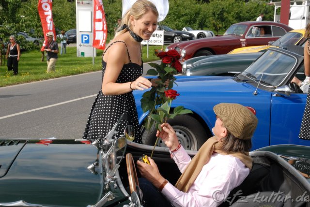 Highlights 2008 waren die Besuche der bekannten Rennfahrer Jochen Mass, Hans Herrmann, Bernd Schneider, Hans Joachim Stuck bei den Classic Days. Schloss Dyck Mit Mercedes Benz feiern die Classic Days am Schloss Dyck im Jahr 2008 das Jubiläum zum Thema „100 Jahre Grand Prix-Erfolge“. Insgesamt vier Formel 1 Boliden sind am Schloss zu sehen, aber auch der Benz 1908 mit dem Christian Lautenschlager 1908 den Grand Prix von Dieppe (F) gewann. Hans Herrmann fährt seinen „Dienstwagen“ – einen Silberpfeil W 196 aus dem Jahr 1955. Jochen Mass fährt den grossen Benz 1908 mit fast 14 Litern Hubraum, Bernd Schneider wird im Formel 1 von 1998, dem Weltmeisterfahrzeug MP4-13 von Mika Häkkinen, seine Kreise um das Schloss ziehen und Dieter Glemser fährt das AMG-F1-Safety-Car um die Rundstrecke vor den Ausfahrten den Rennfahrzeuge zu sichern. Toyota zeigt Rallye-Fahrzeuge (WRC) in einem Sonderlauf mit Isolde Holderied am Steuer. Und auch Jochen Berger ist – wie schon 2007 – wieder am Start. Die Autostadt aus Wolfsburg sendet aus dem Zeithaus sympathische Vertreter der „Volkswagen“ – aber auch das Pacecar für die Tangenten vom Schloss bis zum Startbereich – ein Polizei-VW –Special-Käfer Baujahr 1953. Schloss Dyck Porsche der Modelle 904, 907, 910 und auch sogar ein spektakulärer Porsche 956 (Ex- Fahrzeug von Ayrton Senna) begehen das Jubiläum „60 Jahre Porsche“ bei den Classic Days. Bei den Formel Monoposto aus den 50er und 60er Jahren startet Hans Jörg Goetzl von der Motor Klassik im Lotus 16 aus dem Besitz von Graham Hill. Mit Ihm sind über 15 weitere Monoposto am Start und das Feld wird noch ergänzt durch zusätzliche 20 Starter der HRA ( Graf Berghe von Trips Pokal des ADAC) , die an 80 Jahre Wolfgang Graf Berghe von Trips erinnern wollen. Eine Vielzahl von Fahrzeugen in dieser Kombination und Anzahl findet man sonst in vergleichbaren Veranstaltungen sicherlich nicht. Mehr Informationen finden Sie hier… Zusätzlich zu den Sonderläufen der Werksmuseen und Rennfahrer-Vereinigungen bringen wieder eine Vielzahl von Privat-Besitzern wunderschöne und seltene Fahrzeuge zum Schloss. Einige Highlights aus der Liste der startenden Fahrzeuge finden Sie hier… Ergänzt werden die Starts der Startergruppen im Bereich „Racing Legends“ durch eindrucksvolle Demonstrationsfahrten von Rennfahrzeugen aus Privatsammlungen und Werksmuseen.Seltene Fahrzeuge und solche, die nur äußerst selten auf der Rennstrecke in Bewegung zu sehen sind, geben sich ein Stelldichein und begeistern die Zuschauer. Es gibt ein „Neues Fahrerlager“, in dem Formelfahrzeuge, Rennsportwagen und Rennmotorräder zu sehen sein werden. Das Schloss selbst – mit seinen wundervollen Innenhöfen – wird zum „Alten Fahrerlager“ , in dem hauptsächliche die Vorkriegsfahrzeuge mit ihrer diffizilen Technik und spannender Rennhistorie untergebracht sein werden. Die Innenhöfe des Schlosses sind aus Gründen der Zuschauersicherheit während der Ein- und Ausfahrten der historischen Rennfahrzeuge für Fussgänger und Besucher nicht zugänglich, öffnen aber nach dem Rennbetrieb am späten Nachmittag und laden zum „Pitwalk“ ein. Für den Besuch der Innenhöfe während der Rennrunden steht ein zahlenmäßig begrenztes Kartenkontingent zur Verfügung. Das „Neue Fahrerlager“ bleibt im Jahr 2008 durchgängig geöffnet – die Fahrstrassen sind hier abgetrennt. Der Concours d´Elegance am Schloss Dyck zeigt den interessierten Besuchern und Sammlern „Jewels in the Park“. Graf-Berghe-von-Trips-Trophäe Im Schlosspark wollen die Classic Days eine stilvolle Inszenierung der Ausstellungsfahrzeuge im Concours d´Elegance mit englischem Flair bieten. Über 80 Schmuckstücke aus der Automobil- und Karosserie-Baukunst sind hier versammelt und legen eindrucksvoll Zeugnis von prachtvollen Zeiten und großem handwerklichen Geschick ab. Der Schloss Dyck Classic Days Ticket-Shop ist nun geschlossen. Wir empfehlen die Bestellung über: www.ticketonline.com Sie können die Eintrittskarten zu den Classic Days 2008 auch in Vorverkaufs-Stellen im Großraum Neuss / Jüchen erwerben. Die Adressen finden Sie hier. Die Classic Days 2008 – ein Oldtimerfest für’s Herz und für die Sinne Picknicken rund ums Schloss ist ausdrücklich erwünscht, Musikprogramm sorgt auf den Wiesen vor der Torburg für Unterhaltung. Im Concours d´Elegance ist Flanieren angesagt. Alle Besucher sind einladen in zeitgenössischer Kleidung und mit dem eigenen Klassiker zum Schloss zu kommen. Das Miscanthus-Schilfgrasfeld in Schlossnähe steht in diesem Jahr komplett für die Besucher-Klassiker zur Verfügung. Der Samstagabend bei den Classic Days 2008 - ein bunter „50er Jahre - Abend“! Erstmals gibt es am Samstagabend – gleich nach dem Rennprogramm der Classic Days – ein buntes Abendprogramm im Classic Days-Zelt auf der Apfelwiese vor dem Schloss. Der Eintritt ist kostenlos. Planen Sie einen Abend mit Freunden nach einem ereignisreichen Tag und bleiben Sie einfach ein paar Stunden länger am Schloss. Im dekorierten Classic Days Zelt laden „Die Sweethearts“ zu einer abwechslungsreichen Wirtschaftswunder-Revue und einer Zeit-Reise in die 50er Jahre ein. Schlager, Sketche und Pointen – von Caterina Valente bis Heinz Erhardt. Anette Praktisch, Klaus Saubermann und Wolfgang Wunder lassen als Trio die schönsten deutschen Schlagerperlen der Wirtschaftswunderzeit wieder lebendig werden. In ihrer mitreißenden Show besingen sie virtuos das optimistische Lebensgefühl der 50er Jahre. Mit witzigen Werbespots und Sketchen und Pointen a la Heinz Erhardt.. Souvenirs Souvenirs, Zwei kleine Italiener, Ich will keine Schokolade, Ohne Krimi geht die Mimi… Schuld war nur der Bossanova, Quando Quando, Caprifischer, Es liegt was in der Luft… Heinz Erhardt, Peter Frankenfeld, Conny Froboess, Heid Brühl, Peter Kraus, Bibi Jones, Ilse Werner, Bill Ramsey, Trude Herr….und viele mehr. Also vormerken: Samstagabend bei den Classic Days – am Sc