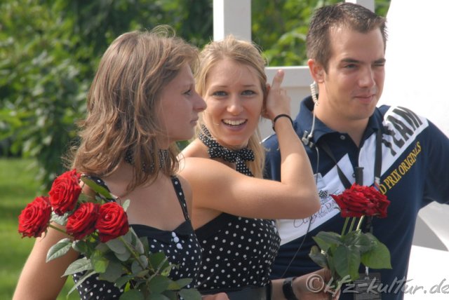 Highlights 2008 waren die Besuche der bekannten Rennfahrer Jochen Mass, Hans Herrmann, Bernd Schneider, Hans Joachim Stuck bei den Classic Days. Schloss Dyck Mit Mercedes Benz feiern die Classic Days am Schloss Dyck im Jahr 2008 das Jubiläum zum Thema „100 Jahre Grand Prix-Erfolge“. Insgesamt vier Formel 1 Boliden sind am Schloss zu sehen, aber auch der Benz 1908 mit dem Christian Lautenschlager 1908 den Grand Prix von Dieppe (F) gewann. Hans Herrmann fährt seinen „Dienstwagen“ – einen Silberpfeil W 196 aus dem Jahr 1955. Jochen Mass fährt den grossen Benz 1908 mit fast 14 Litern Hubraum, Bernd Schneider wird im Formel 1 von 1998, dem Weltmeisterfahrzeug MP4-13 von Mika Häkkinen, seine Kreise um das Schloss ziehen und Dieter Glemser fährt das AMG-F1-Safety-Car um die Rundstrecke vor den Ausfahrten den Rennfahrzeuge zu sichern. Toyota zeigt Rallye-Fahrzeuge (WRC) in einem Sonderlauf mit Isolde Holderied am Steuer. Und auch Jochen Berger ist – wie schon 2007 – wieder am Start. Die Autostadt aus Wolfsburg sendet aus dem Zeithaus sympathische Vertreter der „Volkswagen“ – aber auch das Pacecar für die Tangenten vom Schloss bis zum Startbereich – ein Polizei-VW –Special-Käfer Baujahr 1953. Schloss Dyck Porsche der Modelle 904, 907, 910 und auch sogar ein spektakulärer Porsche 956 (Ex- Fahrzeug von Ayrton Senna) begehen das Jubiläum „60 Jahre Porsche“ bei den Classic Days. Bei den Formel Monoposto aus den 50er und 60er Jahren startet Hans Jörg Goetzl von der Motor Klassik im Lotus 16 aus dem Besitz von Graham Hill. Mit Ihm sind über 15 weitere Monoposto am Start und das Feld wird noch ergänzt durch zusätzliche 20 Starter der HRA ( Graf Berghe von Trips Pokal des ADAC) , die an 80 Jahre Wolfgang Graf Berghe von Trips erinnern wollen. Eine Vielzahl von Fahrzeugen in dieser Kombination und Anzahl findet man sonst in vergleichbaren Veranstaltungen sicherlich nicht. Mehr Informationen finden Sie hier… Zusätzlich zu den Sonderläufen der Werksmuseen und Rennfahrer-Vereinigungen bringen wieder eine Vielzahl von Privat-Besitzern wunderschöne und seltene Fahrzeuge zum Schloss. Einige Highlights aus der Liste der startenden Fahrzeuge finden Sie hier… Ergänzt werden die Starts der Startergruppen im Bereich „Racing Legends“ durch eindrucksvolle Demonstrationsfahrten von Rennfahrzeugen aus Privatsammlungen und Werksmuseen.Seltene Fahrzeuge und solche, die nur äußerst selten auf der Rennstrecke in Bewegung zu sehen sind, geben sich ein Stelldichein und begeistern die Zuschauer. Es gibt ein „Neues Fahrerlager“, in dem Formelfahrzeuge, Rennsportwagen und Rennmotorräder zu sehen sein werden. Das Schloss selbst – mit seinen wundervollen Innenhöfen – wird zum „Alten Fahrerlager“ , in dem hauptsächliche die Vorkriegsfahrzeuge mit ihrer diffizilen Technik und spannender Rennhistorie untergebracht sein werden. Die Innenhöfe des Schlosses sind aus Gründen der Zuschauersicherheit während der Ein- und Ausfahrten der historischen Rennfahrzeuge für Fussgänger und Besucher nicht zugänglich, öffnen aber nach dem Rennbetrieb am späten Nachmittag und laden zum „Pitwalk“ ein. Für den Besuch der Innenhöfe während der Rennrunden steht ein zahlenmäßig begrenztes Kartenkontingent zur Verfügung. Das „Neue Fahrerlager“ bleibt im Jahr 2008 durchgängig geöffnet – die Fahrstrassen sind hier abgetrennt. Der Concours d´Elegance am Schloss Dyck zeigt den interessierten Besuchern und Sammlern „Jewels in the Park“. Graf-Berghe-von-Trips-Trophäe Im Schlosspark wollen die Classic Days eine stilvolle Inszenierung der Ausstellungsfahrzeuge im Concours d´Elegance mit englischem Flair bieten. Über 80 Schmuckstücke aus der Automobil- und Karosserie-Baukunst sind hier versammelt und legen eindrucksvoll Zeugnis von prachtvollen Zeiten und großem handwerklichen Geschick ab. Der Schloss Dyck Classic Days Ticket-Shop ist nun geschlossen. Wir empfehlen die Bestellung über: www.ticketonline.com Sie können die Eintrittskarten zu den Classic Days 2008 auch in Vorverkaufs-Stellen im Großraum Neuss / Jüchen erwerben. Die Adressen finden Sie hier. Die Classic Days 2008 – ein Oldtimerfest für’s Herz und für die Sinne Picknicken rund ums Schloss ist ausdrücklich erwünscht, Musikprogramm sorgt auf den Wiesen vor der Torburg für Unterhaltung. Im Concours d´Elegance ist Flanieren angesagt. Alle Besucher sind einladen in zeitgenössischer Kleidung und mit dem eigenen Klassiker zum Schloss zu kommen. Das Miscanthus-Schilfgrasfeld in Schlossnähe steht in diesem Jahr komplett für die Besucher-Klassiker zur Verfügung. Der Samstagabend bei den Classic Days 2008 - ein bunter „50er Jahre - Abend“! Erstmals gibt es am Samstagabend – gleich nach dem Rennprogramm der Classic Days – ein buntes Abendprogramm im Classic Days-Zelt auf der Apfelwiese vor dem Schloss. Der Eintritt ist kostenlos. Planen Sie einen Abend mit Freunden nach einem ereignisreichen Tag und bleiben Sie einfach ein paar Stunden länger am Schloss. Im dekorierten Classic Days Zelt laden „Die Sweethearts“ zu einer abwechslungsreichen Wirtschaftswunder-Revue und einer Zeit-Reise in die 50er Jahre ein. Schlager, Sketche und Pointen – von Caterina Valente bis Heinz Erhardt. Anette Praktisch, Klaus Saubermann und Wolfgang Wunder lassen als Trio die schönsten deutschen Schlagerperlen der Wirtschaftswunderzeit wieder lebendig werden. In ihrer mitreißenden Show besingen sie virtuos das optimistische Lebensgefühl der 50er Jahre. Mit witzigen Werbespots und Sketchen und Pointen a la Heinz Erhardt.. Souvenirs Souvenirs, Zwei kleine Italiener, Ich will keine Schokolade, Ohne Krimi geht die Mimi… Schuld war nur der Bossanova, Quando Quando, Caprifischer, Es liegt was in der Luft… Heinz Erhardt, Peter Frankenfeld, Conny Froboess, Heid Brühl, Peter Kraus, Bibi Jones, Ilse Werner, Bill Ramsey, Trude Herr….und viele mehr. Also vormerken: Samstagabend bei den Classic Days – am Sc