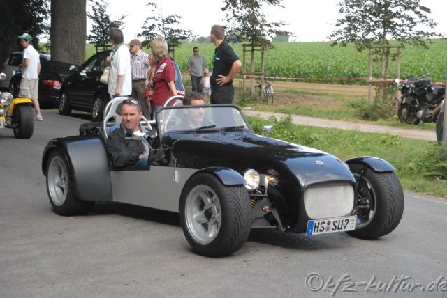 Highlights 2008 waren die Besuche der bekannten Rennfahrer Jochen Mass, Hans Herrmann, Bernd Schneider, Hans Joachim Stuck bei den Classic Days. Schloss Dyck Mit Mercedes Benz feiern die Classic Days am Schloss Dyck im Jahr 2008 das Jubiläum zum Thema „100 Jahre Grand Prix-Erfolge“. Insgesamt vier Formel 1 Boliden sind am Schloss zu sehen, aber auch der Benz 1908 mit dem Christian Lautenschlager 1908 den Grand Prix von Dieppe (F) gewann. Hans Herrmann fährt seinen „Dienstwagen“ – einen Silberpfeil W 196 aus dem Jahr 1955. Jochen Mass fährt den grossen Benz 1908 mit fast 14 Litern Hubraum, Bernd Schneider wird im Formel 1 von 1998, dem Weltmeisterfahrzeug MP4-13 von Mika Häkkinen, seine Kreise um das Schloss ziehen und Dieter Glemser fährt das AMG-F1-Safety-Car um die Rundstrecke vor den Ausfahrten den Rennfahrzeuge zu sichern. Toyota zeigt Rallye-Fahrzeuge (WRC) in einem Sonderlauf mit Isolde Holderied am Steuer. Und auch Jochen Berger ist – wie schon 2007 – wieder am Start. Die Autostadt aus Wolfsburg sendet aus dem Zeithaus sympathische Vertreter der „Volkswagen“ – aber auch das Pacecar für die Tangenten vom Schloss bis zum Startbereich – ein Polizei-VW –Special-Käfer Baujahr 1953. Schloss Dyck Porsche der Modelle 904, 907, 910 und auch sogar ein spektakulärer Porsche 956 (Ex- Fahrzeug von Ayrton Senna) begehen das Jubiläum „60 Jahre Porsche“ bei den Classic Days. Bei den Formel Monoposto aus den 50er und 60er Jahren startet Hans Jörg Goetzl von der Motor Klassik im Lotus 16 aus dem Besitz von Graham Hill. Mit Ihm sind über 15 weitere Monoposto am Start und das Feld wird noch ergänzt durch zusätzliche 20 Starter der HRA ( Graf Berghe von Trips Pokal des ADAC) , die an 80 Jahre Wolfgang Graf Berghe von Trips erinnern wollen. Eine Vielzahl von Fahrzeugen in dieser Kombination und Anzahl findet man sonst in vergleichbaren Veranstaltungen sicherlich nicht. Mehr Informationen finden Sie hier… Zusätzlich zu den Sonderläufen der Werksmuseen und Rennfahrer-Vereinigungen bringen wieder eine Vielzahl von Privat-Besitzern wunderschöne und seltene Fahrzeuge zum Schloss. Einige Highlights aus der Liste der startenden Fahrzeuge finden Sie hier… Ergänzt werden die Starts der Startergruppen im Bereich „Racing Legends“ durch eindrucksvolle Demonstrationsfahrten von Rennfahrzeugen aus Privatsammlungen und Werksmuseen.Seltene Fahrzeuge und solche, die nur äußerst selten auf der Rennstrecke in Bewegung zu sehen sind, geben sich ein Stelldichein und begeistern die Zuschauer. Es gibt ein „Neues Fahrerlager“, in dem Formelfahrzeuge, Rennsportwagen und Rennmotorräder zu sehen sein werden. Das Schloss selbst – mit seinen wundervollen Innenhöfen – wird zum „Alten Fahrerlager“ , in dem hauptsächliche die Vorkriegsfahrzeuge mit ihrer diffizilen Technik und spannender Rennhistorie untergebracht sein werden. Die Innenhöfe des Schlosses sind aus Gründen der Zuschauersicherheit während der Ein- und Ausfahrten der historischen Rennfahrzeuge für Fussgänger und Besucher nicht zugänglich, öffnen aber nach dem Rennbetrieb am späten Nachmittag und laden zum „Pitwalk“ ein. Für den Besuch der Innenhöfe während der Rennrunden steht ein zahlenmäßig begrenztes Kartenkontingent zur Verfügung. Das „Neue Fahrerlager“ bleibt im Jahr 2008 durchgängig geöffnet – die Fahrstrassen sind hier abgetrennt. Der Concours d´Elegance am Schloss Dyck zeigt den interessierten Besuchern und Sammlern „Jewels in the Park“. Graf-Berghe-von-Trips-Trophäe Im Schlosspark wollen die Classic Days eine stilvolle Inszenierung der Ausstellungsfahrzeuge im Concours d´Elegance mit englischem Flair bieten. Über 80 Schmuckstücke aus der Automobil- und Karosserie-Baukunst sind hier versammelt und legen eindrucksvoll Zeugnis von prachtvollen Zeiten und großem handwerklichen Geschick ab. Der Schloss Dyck Classic Days Ticket-Shop ist nun geschlossen. Wir empfehlen die Bestellung über: www.ticketonline.com Sie können die Eintrittskarten zu den Classic Days 2008 auch in Vorverkaufs-Stellen im Großraum Neuss / Jüchen erwerben. Die Adressen finden Sie hier. Die Classic Days 2008 – ein Oldtimerfest für’s Herz und für die Sinne Picknicken rund ums Schloss ist ausdrücklich erwünscht, Musikprogramm sorgt auf den Wiesen vor der Torburg für Unterhaltung. Im Concours d´Elegance ist Flanieren angesagt. Alle Besucher sind einladen in zeitgenössischer Kleidung und mit dem eigenen Klassiker zum Schloss zu kommen. Das Miscanthus-Schilfgrasfeld in Schlossnähe steht in diesem Jahr komplett für die Besucher-Klassiker zur Verfügung. Der Samstagabend bei den Classic Days 2008 - ein bunter „50er Jahre - Abend“! Erstmals gibt es am Samstagabend – gleich nach dem Rennprogramm der Classic Days – ein buntes Abendprogramm im Classic Days-Zelt auf der Apfelwiese vor dem Schloss. Der Eintritt ist kostenlos. Planen Sie einen Abend mit Freunden nach einem ereignisreichen Tag und bleiben Sie einfach ein paar Stunden länger am Schloss. Im dekorierten Classic Days Zelt laden „Die Sweethearts“ zu einer abwechslungsreichen Wirtschaftswunder-Revue und einer Zeit-Reise in die 50er Jahre ein. Schlager, Sketche und Pointen – von Caterina Valente bis Heinz Erhardt. Anette Praktisch, Klaus Saubermann und Wolfgang Wunder lassen als Trio die schönsten deutschen Schlagerperlen der Wirtschaftswunderzeit wieder lebendig werden. In ihrer mitreißenden Show besingen sie virtuos das optimistische Lebensgefühl der 50er Jahre. Mit witzigen Werbespots und Sketchen und Pointen a la Heinz Erhardt.. Souvenirs Souvenirs, Zwei kleine Italiener, Ich will keine Schokolade, Ohne Krimi geht die Mimi… Schuld war nur der Bossanova, Quando Quando, Caprifischer, Es liegt was in der Luft… Heinz Erhardt, Peter Frankenfeld, Conny Froboess, Heid Brühl, Peter Kraus, Bibi Jones, Ilse Werner, Bill Ramsey, Trude Herr….und viele mehr. Also vormerken: Samstagabend bei den Classic Days – am Sc