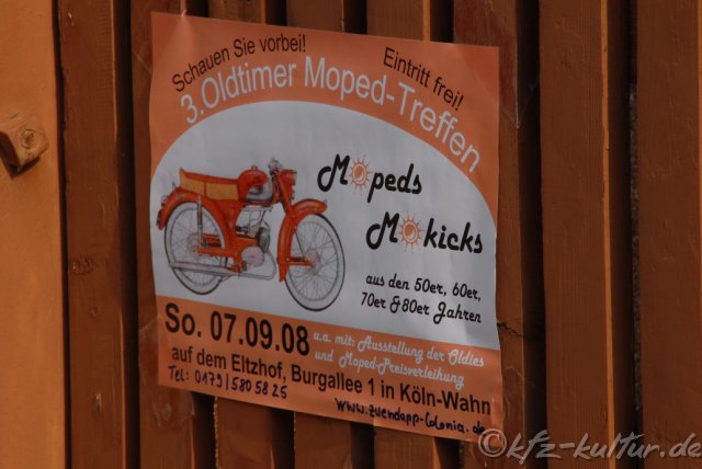 Der Veranstalter Golden Oldies ist stolz von abermals 70000 Zuschauer an 3 Tagen. Hier bei KFZ-Kultur.de sehen Sie 600 Bilder Fotos vom Samstag, den 26.7.2008 Vom 25. bis 27. Juli 2008 in Wettenberg 19. Festival Golden Oldies- Eine hessische Gemeinde auf Zeitreise in die Wirtschaftswunderzeit der 50er und 60er 3 Tage - 9 Bühnen - 50 Livebands - über 1.000 Oldtimer und 70.000 Besucher Musik & Motoren beim Festival Golden Oldies im Schatten der Burg Gleiberg Das mittelhessische Wettenberg wird zum 19. Mail für drei Tage „Deutschlands Hauptstadt der Oldiemusik“. Auf 9 Bühnen präsentieren rund 50 Musikgruppen Schlager, Beat, Soul, und Rock’n’Roll im Schatten der Burg Gleiberg. Eine atemberaubende Zeitreise in die 50er, 60er und 70er Jahre mit Deutschlands größter Oldtimer-Show. Das Motto in diesem Jahr: „Familie, Fortschritt & Souvenirs“ Das Festival hat Kultstatus und gehört zu den TOP Oldtimer Veranstaltungen in der Bundesrepublik. Was vor 18 Jahren mit nur 8 Bands, vier Bühnen und rund 3.000 begeisterten Fans begann, wurde inzwischen von der Fachpresse zu „Deutschlands schönster Oldiefete“ nominiert. Knapp 70.000 Besucher zählte das Festival im vergangenen Jahr. Mit Bus, Bahn und eigenem PKW reisen sie aus der gesamten Bundesrepublik und auch aus dem benachbarten Ausland an, um bei diesem Ereignis dabei zu sein. Golden Oldies bietet gleichermaßen Information und Unterhaltung zur Kulturgeschichte der vergangenen 50 Jahre. Von überregionalem Interesse ist bei Autoliebhabern die Ausstellung der rund 1.000 Klassikfahrzeuge am Sonntag, 27. Juli 2008 zu der private Fahrzeugbesitzer und über 50 Oldtimerclubs eingeladen sind.. Fahrzeuge, die zum Motto „Familie, Fortschritt Souvenirs“ passen, sind in diesem Jahr besonders gern gesehen, denn ihnen wird dieses Mal besondere Aufmerksamkeit gewidmet. Wiedersehen mit meinem ersten Auto: HEINRICH PUMPERNICKEL, alias Chris Howland. Er wird zum 19. Festival nach Wettenberg kommen, um ein Wiedersehen mit seinem 1. Auto zu feiern: Einem DKW 3=6, 2 türig fuhr "Mr. Pumpernickel" in den 50er Jahren Das Programm wird abgerundet durch zahlreiche Aktionen, Ausstellungen, ein umfangreiches Kinderprogramm und durch Deutschlands größten „Nostalgie Markt der 50er Jahre“. In rund 100 Verkaufsständen wird Originalware der sogenannten „Wirtschaftswunderzeit“ angeboten. Petticoats, Tulpenlampen, Schallplatten und Jukeboxen stehen in der Hauptstraße und in der Mehrzweckhalle zum Verkauf. Das Rockmuseum von Maria und Wolfgang Thomas stellt in der Mehrzweckhalle einen Querschnitt aus der Gesamtsammlung aus. Cruising der besonderen Art: Kinderwagen-Parade! Auf vier Rädern, 1 Fahrer(in) und meist nur mit einem Mitfahrer "belegt"... Am Samstag, dem 26. Juli 2008 gibt es ein Cruising der besonderen Art: Der Kostümverleih "Wundertüte" lädt ein, sich im Outfit der 50er/60er und mit einem Kinderwagen dieser Epoche zum Festivals Golden Oldies zu präsentieren und der „Deutsche Petticoat-Wettbewerb“ lädt alle Besucher des Festivals zu einer Zusammenkunft im Outfit der 50er bis 70er Jahre ein. Zusammengestellt wird das Festival von der Peter Turczak eventeam GmbH & Co KG. Unterstützt wird das Festival Golden Oldies von der Bitburger Brauerei, Neils & Kraft Mercedes Partner der Daimler-Chrysler AG, der Deutschen Bahn AG und der SFinanzgruppe Hessen-Thüringen. Nähere Informationen unter www.Golden-Oldies.de oder direkt bei der Gemeinde Wettenberg, 35435 Wettenberg, Telefon: 06 4 1 – 8 04 62