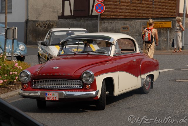 Der Veranstalter Golden Oldies ist stolz von abermals 70000 Zuschauer an 3 Tagen. Hier bei KFZ-Kultur.de sehen Sie 600 Bilder Fotos vom Samstag, den 26.7.2008 Vom 25. bis 27. Juli 2008 in Wettenberg 19. Festival Golden Oldies- Eine hessische Gemeinde auf Zeitreise in die Wirtschaftswunderzeit der 50er und 60er 3 Tage - 9 Bühnen - 50 Livebands - über 1.000 Oldtimer und 70.000 Besucher Musik & Motoren beim Festival Golden Oldies im Schatten der Burg Gleiberg Das mittelhessische Wettenberg wird zum 19. Mail für drei Tage „Deutschlands Hauptstadt der Oldiemusik“. Auf 9 Bühnen präsentieren rund 50 Musikgruppen Schlager, Beat, Soul, und Rock’n’Roll im Schatten der Burg Gleiberg. Eine atemberaubende Zeitreise in die 50er, 60er und 70er Jahre mit Deutschlands größter Oldtimer-Show. Das Motto in diesem Jahr: „Familie, Fortschritt & Souvenirs“ Das Festival hat Kultstatus und gehört zu den TOP Oldtimer Veranstaltungen in der Bundesrepublik. Was vor 18 Jahren mit nur 8 Bands, vier Bühnen und rund 3.000 begeisterten Fans begann, wurde inzwischen von der Fachpresse zu „Deutschlands schönster Oldiefete“ nominiert. Knapp 70.000 Besucher zählte das Festival im vergangenen Jahr. Mit Bus, Bahn und eigenem PKW reisen sie aus der gesamten Bundesrepublik und auch aus dem benachbarten Ausland an, um bei diesem Ereignis dabei zu sein. Golden Oldies bietet gleichermaßen Information und Unterhaltung zur Kulturgeschichte der vergangenen 50 Jahre. Von überregionalem Interesse ist bei Autoliebhabern die Ausstellung der rund 1.000 Klassikfahrzeuge am Sonntag, 27. Juli 2008 zu der private Fahrzeugbesitzer und über 50 Oldtimerclubs eingeladen sind.. Fahrzeuge, die zum Motto „Familie, Fortschritt Souvenirs“ passen, sind in diesem Jahr besonders gern gesehen, denn ihnen wird dieses Mal besondere Aufmerksamkeit gewidmet. Wiedersehen mit meinem ersten Auto: HEINRICH PUMPERNICKEL, alias Chris Howland. Er wird zum 19. Festival nach Wettenberg kommen, um ein Wiedersehen mit seinem 1. Auto zu feiern: Einem DKW 3=6, 2 türig fuhr "Mr. Pumpernickel" in den 50er Jahren Das Programm wird abgerundet durch zahlreiche Aktionen, Ausstellungen, ein umfangreiches Kinderprogramm und durch Deutschlands größten „Nostalgie Markt der 50er Jahre“. In rund 100 Verkaufsständen wird Originalware der sogenannten „Wirtschaftswunderzeit“ angeboten. Petticoats, Tulpenlampen, Schallplatten und Jukeboxen stehen in der Hauptstraße und in der Mehrzweckhalle zum Verkauf. Das Rockmuseum von Maria und Wolfgang Thomas stellt in der Mehrzweckhalle einen Querschnitt aus der Gesamtsammlung aus. Cruising der besonderen Art: Kinderwagen-Parade! Auf vier Rädern, 1 Fahrer(in) und meist nur mit einem Mitfahrer "belegt"... Am Samstag, dem 26. Juli 2008 gibt es ein Cruising der besonderen Art: Der Kostümverleih "Wundertüte" lädt ein, sich im Outfit der 50er/60er und mit einem Kinderwagen dieser Epoche zum Festivals Golden Oldies zu präsentieren und der „Deutsche Petticoat-Wettbewerb“ lädt alle Besucher des Festivals zu einer Zusammenkunft im Outfit der 50er bis 70er Jahre ein. Zusammengestellt wird das Festival von der Peter Turczak eventeam GmbH & Co KG. Unterstützt wird das Festival Golden Oldies von der Bitburger Brauerei, Neils & Kraft Mercedes Partner der Daimler-Chrysler AG, der Deutschen Bahn AG und der SFinanzgruppe Hessen-Thüringen. Nähere Informationen unter www.Golden-Oldies.de oder direkt bei der Gemeinde Wettenberg, 35435 Wettenberg, Telefon: 06 4 1 – 8 04 62