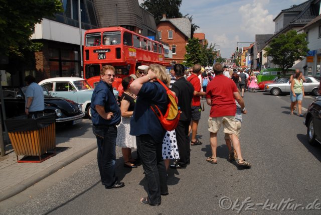 Der Veranstalter Golden Oldies ist stolz von abermals 70000 Zuschauer an 3 Tagen. Hier bei KFZ-Kultur.de sehen Sie 600 Bilder Fotos vom Samstag, den 26.7.2008 Vom 25. bis 27. Juli 2008 in Wettenberg 19. Festival Golden Oldies- Eine hessische Gemeinde auf Zeitreise in die Wirtschaftswunderzeit der 50er und 60er 3 Tage - 9 Bühnen - 50 Livebands - über 1.000 Oldtimer und 70.000 Besucher Musik & Motoren beim Festival Golden Oldies im Schatten der Burg Gleiberg Das mittelhessische Wettenberg wird zum 19. Mail für drei Tage „Deutschlands Hauptstadt der Oldiemusik“. Auf 9 Bühnen präsentieren rund 50 Musikgruppen Schlager, Beat, Soul, und Rock’n’Roll im Schatten der Burg Gleiberg. Eine atemberaubende Zeitreise in die 50er, 60er und 70er Jahre mit Deutschlands größter Oldtimer-Show. Das Motto in diesem Jahr: „Familie, Fortschritt & Souvenirs“ Das Festival hat Kultstatus und gehört zu den TOP Oldtimer Veranstaltungen in der Bundesrepublik. Was vor 18 Jahren mit nur 8 Bands, vier Bühnen und rund 3.000 begeisterten Fans begann, wurde inzwischen von der Fachpresse zu „Deutschlands schönster Oldiefete“ nominiert. Knapp 70.000 Besucher zählte das Festival im vergangenen Jahr. Mit Bus, Bahn und eigenem PKW reisen sie aus der gesamten Bundesrepublik und auch aus dem benachbarten Ausland an, um bei diesem Ereignis dabei zu sein. Golden Oldies bietet gleichermaßen Information und Unterhaltung zur Kulturgeschichte der vergangenen 50 Jahre. Von überregionalem Interesse ist bei Autoliebhabern die Ausstellung der rund 1.000 Klassikfahrzeuge am Sonntag, 27. Juli 2008 zu der private Fahrzeugbesitzer und über 50 Oldtimerclubs eingeladen sind.. Fahrzeuge, die zum Motto „Familie, Fortschritt Souvenirs“ passen, sind in diesem Jahr besonders gern gesehen, denn ihnen wird dieses Mal besondere Aufmerksamkeit gewidmet. Wiedersehen mit meinem ersten Auto: HEINRICH PUMPERNICKEL, alias Chris Howland. Er wird zum 19. Festival nach Wettenberg kommen, um ein Wiedersehen mit seinem 1. Auto zu feiern: Einem DKW 3=6, 2 türig fuhr "Mr. Pumpernickel" in den 50er Jahren Das Programm wird abgerundet durch zahlreiche Aktionen, Ausstellungen, ein umfangreiches Kinderprogramm und durch Deutschlands größten „Nostalgie Markt der 50er Jahre“. In rund 100 Verkaufsständen wird Originalware der sogenannten „Wirtschaftswunderzeit“ angeboten. Petticoats, Tulpenlampen, Schallplatten und Jukeboxen stehen in der Hauptstraße und in der Mehrzweckhalle zum Verkauf. Das Rockmuseum von Maria und Wolfgang Thomas stellt in der Mehrzweckhalle einen Querschnitt aus der Gesamtsammlung aus. Cruising der besonderen Art: Kinderwagen-Parade! Auf vier Rädern, 1 Fahrer(in) und meist nur mit einem Mitfahrer "belegt"... Am Samstag, dem 26. Juli 2008 gibt es ein Cruising der besonderen Art: Der Kostümverleih "Wundertüte" lädt ein, sich im Outfit der 50er/60er und mit einem Kinderwagen dieser Epoche zum Festivals Golden Oldies zu präsentieren und der „Deutsche Petticoat-Wettbewerb“ lädt alle Besucher des Festivals zu einer Zusammenkunft im Outfit der 50er bis 70er Jahre ein. Zusammengestellt wird das Festival von der Peter Turczak eventeam GmbH & Co KG. Unterstützt wird das Festival Golden Oldies von der Bitburger Brauerei, Neils & Kraft Mercedes Partner der Daimler-Chrysler AG, der Deutschen Bahn AG und der SFinanzgruppe Hessen-Thüringen. Nähere Informationen unter www.Golden-Oldies.de oder direkt bei der Gemeinde Wettenberg, 35435 Wettenberg, Telefon: 06 4 1 – 8 04 62