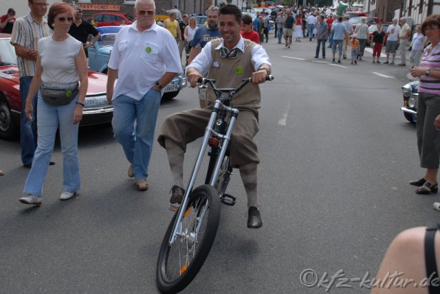 Der Veranstalter Golden Oldies ist stolz von abermals 70000 Zuschauer an 3 Tagen. Hier bei KFZ-Kultur.de sehen Sie 600 Bilder Fotos vom Samstag, den 26.7.2008 Vom 25. bis 27. Juli 2008 in Wettenberg 19. Festival Golden Oldies- Eine hessische Gemeinde auf Zeitreise in die Wirtschaftswunderzeit der 50er und 60er 3 Tage - 9 Bühnen - 50 Livebands - über 1.000 Oldtimer und 70.000 Besucher Musik & Motoren beim Festival Golden Oldies im Schatten der Burg Gleiberg Das mittelhessische Wettenberg wird zum 19. Mail für drei Tage „Deutschlands Hauptstadt der Oldiemusik“. Auf 9 Bühnen präsentieren rund 50 Musikgruppen Schlager, Beat, Soul, und Rock’n’Roll im Schatten der Burg Gleiberg. Eine atemberaubende Zeitreise in die 50er, 60er und 70er Jahre mit Deutschlands größter Oldtimer-Show. Das Motto in diesem Jahr: „Familie, Fortschritt & Souvenirs“ Das Festival hat Kultstatus und gehört zu den TOP Oldtimer Veranstaltungen in der Bundesrepublik. Was vor 18 Jahren mit nur 8 Bands, vier Bühnen und rund 3.000 begeisterten Fans begann, wurde inzwischen von der Fachpresse zu „Deutschlands schönster Oldiefete“ nominiert. Knapp 70.000 Besucher zählte das Festival im vergangenen Jahr. Mit Bus, Bahn und eigenem PKW reisen sie aus der gesamten Bundesrepublik und auch aus dem benachbarten Ausland an, um bei diesem Ereignis dabei zu sein. Golden Oldies bietet gleichermaßen Information und Unterhaltung zur Kulturgeschichte der vergangenen 50 Jahre. Von überregionalem Interesse ist bei Autoliebhabern die Ausstellung der rund 1.000 Klassikfahrzeuge am Sonntag, 27. Juli 2008 zu der private Fahrzeugbesitzer und über 50 Oldtimerclubs eingeladen sind.. Fahrzeuge, die zum Motto „Familie, Fortschritt Souvenirs“ passen, sind in diesem Jahr besonders gern gesehen, denn ihnen wird dieses Mal besondere Aufmerksamkeit gewidmet. Wiedersehen mit meinem ersten Auto: HEINRICH PUMPERNICKEL, alias Chris Howland. Er wird zum 19. Festival nach Wettenberg kommen, um ein Wiedersehen mit seinem 1. Auto zu feiern: Einem DKW 3=6, 2 türig fuhr "Mr. Pumpernickel" in den 50er Jahren Das Programm wird abgerundet durch zahlreiche Aktionen, Ausstellungen, ein umfangreiches Kinderprogramm und durch Deutschlands größten „Nostalgie Markt der 50er Jahre“. In rund 100 Verkaufsständen wird Originalware der sogenannten „Wirtschaftswunderzeit“ angeboten. Petticoats, Tulpenlampen, Schallplatten und Jukeboxen stehen in der Hauptstraße und in der Mehrzweckhalle zum Verkauf. Das Rockmuseum von Maria und Wolfgang Thomas stellt in der Mehrzweckhalle einen Querschnitt aus der Gesamtsammlung aus. Cruising der besonderen Art: Kinderwagen-Parade! Auf vier Rädern, 1 Fahrer(in) und meist nur mit einem Mitfahrer "belegt"... Am Samstag, dem 26. Juli 2008 gibt es ein Cruising der besonderen Art: Der Kostümverleih "Wundertüte" lädt ein, sich im Outfit der 50er/60er und mit einem Kinderwagen dieser Epoche zum Festivals Golden Oldies zu präsentieren und der „Deutsche Petticoat-Wettbewerb“ lädt alle Besucher des Festivals zu einer Zusammenkunft im Outfit der 50er bis 70er Jahre ein. Zusammengestellt wird das Festival von der Peter Turczak eventeam GmbH & Co KG. Unterstützt wird das Festival Golden Oldies von der Bitburger Brauerei, Neils & Kraft Mercedes Partner der Daimler-Chrysler AG, der Deutschen Bahn AG und der SFinanzgruppe Hessen-Thüringen. Nähere Informationen unter www.Golden-Oldies.de oder direkt bei der Gemeinde Wettenberg, 35435 Wettenberg, Telefon: 06 4 1 – 8 04 62