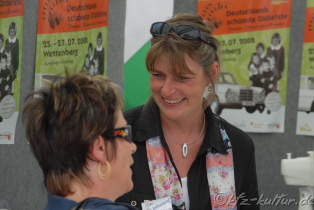 Der Veranstalter Golden Oldies ist stolz von abermals 70000 Zuschauer an 3 Tagen. Hier bei KFZ-Kultur.de sehen Sie 600 Bilder Fotos vom Samstag, den 26.7.2008 Vom 25. bis 27. Juli 2008 in Wettenberg 19. Festival Golden Oldies- Eine hessische Gemeinde auf Zeitreise in die Wirtschaftswunderzeit der 50er und 60er 3 Tage - 9 Bühnen - 50 Livebands - über 1.000 Oldtimer und 70.000 Besucher Musik & Motoren beim Festival Golden Oldies im Schatten der Burg Gleiberg Das mittelhessische Wettenberg wird zum 19. Mail für drei Tage „Deutschlands Hauptstadt der Oldiemusik“. Auf 9 Bühnen präsentieren rund 50 Musikgruppen Schlager, Beat, Soul, und Rock’n’Roll im Schatten der Burg Gleiberg. Eine atemberaubende Zeitreise in die 50er, 60er und 70er Jahre mit Deutschlands größter Oldtimer-Show. Das Motto in diesem Jahr: „Familie, Fortschritt & Souvenirs“ Das Festival hat Kultstatus und gehört zu den TOP Oldtimer Veranstaltungen in der Bundesrepublik. Was vor 18 Jahren mit nur 8 Bands, vier Bühnen und rund 3.000 begeisterten Fans begann, wurde inzwischen von der Fachpresse zu „Deutschlands schönster Oldiefete“ nominiert. Knapp 70.000 Besucher zählte das Festival im vergangenen Jahr. Mit Bus, Bahn und eigenem PKW reisen sie aus der gesamten Bundesrepublik und auch aus dem benachbarten Ausland an, um bei diesem Ereignis dabei zu sein. Golden Oldies bietet gleichermaßen Information und Unterhaltung zur Kulturgeschichte der vergangenen 50 Jahre. Von überregionalem Interesse ist bei Autoliebhabern die Ausstellung der rund 1.000 Klassikfahrzeuge am Sonntag, 27. Juli 2008 zu der private Fahrzeugbesitzer und über 50 Oldtimerclubs eingeladen sind.. Fahrzeuge, die zum Motto „Familie, Fortschritt Souvenirs“ passen, sind in diesem Jahr besonders gern gesehen, denn ihnen wird dieses Mal besondere Aufmerksamkeit gewidmet. Wiedersehen mit meinem ersten Auto: HEINRICH PUMPERNICKEL, alias Chris Howland. Er wird zum 19. Festival nach Wettenberg kommen, um ein Wiedersehen mit seinem 1. Auto zu feiern: Einem DKW 3=6, 2 türig fuhr "Mr. Pumpernickel" in den 50er Jahren Das Programm wird abgerundet durch zahlreiche Aktionen, Ausstellungen, ein umfangreiches Kinderprogramm und durch Deutschlands größten „Nostalgie Markt der 50er Jahre“. In rund 100 Verkaufsständen wird Originalware der sogenannten „Wirtschaftswunderzeit“ angeboten. Petticoats, Tulpenlampen, Schallplatten und Jukeboxen stehen in der Hauptstraße und in der Mehrzweckhalle zum Verkauf. Das Rockmuseum von Maria und Wolfgang Thomas stellt in der Mehrzweckhalle einen Querschnitt aus der Gesamtsammlung aus. Cruising der besonderen Art: Kinderwagen-Parade! Auf vier Rädern, 1 Fahrer(in) und meist nur mit einem Mitfahrer "belegt"... Am Samstag, dem 26. Juli 2008 gibt es ein Cruising der besonderen Art: Der Kostümverleih "Wundertüte" lädt ein, sich im Outfit der 50er/60er und mit einem Kinderwagen dieser Epoche zum Festivals Golden Oldies zu präsentieren und der „Deutsche Petticoat-Wettbewerb“ lädt alle Besucher des Festivals zu einer Zusammenkunft im Outfit der 50er bis 70er Jahre ein. Zusammengestellt wird das Festival von der Peter Turczak eventeam GmbH & Co KG. Unterstützt wird das Festival Golden Oldies von der Bitburger Brauerei, Neils & Kraft Mercedes Partner der Daimler-Chrysler AG, der Deutschen Bahn AG und der SFinanzgruppe Hessen-Thüringen. Nähere Informationen unter www.Golden-Oldies.de oder direkt bei der Gemeinde Wettenberg, 35435 Wettenberg, Telefon: 06 4 1 – 8 04 62