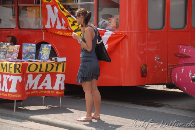 Der Veranstalter Golden Oldies ist stolz von abermals 70000 Zuschauer an 3 Tagen. Hier bei KFZ-Kultur.de sehen Sie 600 Bilder Fotos vom Samstag, den 26.7.2008 Vom 25. bis 27. Juli 2008 in Wettenberg 19. Festival Golden Oldies- Eine hessische Gemeinde auf Zeitreise in die Wirtschaftswunderzeit der 50er und 60er 3 Tage - 9 Bühnen - 50 Livebands - über 1.000 Oldtimer und 70.000 Besucher Musik & Motoren beim Festival Golden Oldies im Schatten der Burg Gleiberg Das mittelhessische Wettenberg wird zum 19. Mail für drei Tage „Deutschlands Hauptstadt der Oldiemusik“. Auf 9 Bühnen präsentieren rund 50 Musikgruppen Schlager, Beat, Soul, und Rock’n’Roll im Schatten der Burg Gleiberg. Eine atemberaubende Zeitreise in die 50er, 60er und 70er Jahre mit Deutschlands größter Oldtimer-Show. Das Motto in diesem Jahr: „Familie, Fortschritt & Souvenirs“ Das Festival hat Kultstatus und gehört zu den TOP Oldtimer Veranstaltungen in der Bundesrepublik. Was vor 18 Jahren mit nur 8 Bands, vier Bühnen und rund 3.000 begeisterten Fans begann, wurde inzwischen von der Fachpresse zu „Deutschlands schönster Oldiefete“ nominiert. Knapp 70.000 Besucher zählte das Festival im vergangenen Jahr. Mit Bus, Bahn und eigenem PKW reisen sie aus der gesamten Bundesrepublik und auch aus dem benachbarten Ausland an, um bei diesem Ereignis dabei zu sein. Golden Oldies bietet gleichermaßen Information und Unterhaltung zur Kulturgeschichte der vergangenen 50 Jahre. Von überregionalem Interesse ist bei Autoliebhabern die Ausstellung der rund 1.000 Klassikfahrzeuge am Sonntag, 27. Juli 2008 zu der private Fahrzeugbesitzer und über 50 Oldtimerclubs eingeladen sind.. Fahrzeuge, die zum Motto „Familie, Fortschritt Souvenirs“ passen, sind in diesem Jahr besonders gern gesehen, denn ihnen wird dieses Mal besondere Aufmerksamkeit gewidmet. Wiedersehen mit meinem ersten Auto: HEINRICH PUMPERNICKEL, alias Chris Howland. Er wird zum 19. Festival nach Wettenberg kommen, um ein Wiedersehen mit seinem 1. Auto zu feiern: Einem DKW 3=6, 2 türig fuhr "Mr. Pumpernickel" in den 50er Jahren Das Programm wird abgerundet durch zahlreiche Aktionen, Ausstellungen, ein umfangreiches Kinderprogramm und durch Deutschlands größten „Nostalgie Markt der 50er Jahre“. In rund 100 Verkaufsständen wird Originalware der sogenannten „Wirtschaftswunderzeit“ angeboten. Petticoats, Tulpenlampen, Schallplatten und Jukeboxen stehen in der Hauptstraße und in der Mehrzweckhalle zum Verkauf. Das Rockmuseum von Maria und Wolfgang Thomas stellt in der Mehrzweckhalle einen Querschnitt aus der Gesamtsammlung aus. Cruising der besonderen Art: Kinderwagen-Parade! Auf vier Rädern, 1 Fahrer(in) und meist nur mit einem Mitfahrer "belegt"... Am Samstag, dem 26. Juli 2008 gibt es ein Cruising der besonderen Art: Der Kostümverleih "Wundertüte" lädt ein, sich im Outfit der 50er/60er und mit einem Kinderwagen dieser Epoche zum Festivals Golden Oldies zu präsentieren und der „Deutsche Petticoat-Wettbewerb“ lädt alle Besucher des Festivals zu einer Zusammenkunft im Outfit der 50er bis 70er Jahre ein. Zusammengestellt wird das Festival von der Peter Turczak eventeam GmbH & Co KG. Unterstützt wird das Festival Golden Oldies von der Bitburger Brauerei, Neils & Kraft Mercedes Partner der Daimler-Chrysler AG, der Deutschen Bahn AG und der SFinanzgruppe Hessen-Thüringen. Nähere Informationen unter www.Golden-Oldies.de oder direkt bei der Gemeinde Wettenberg, 35435 Wettenberg, Telefon: 06 4 1 – 8 04 62