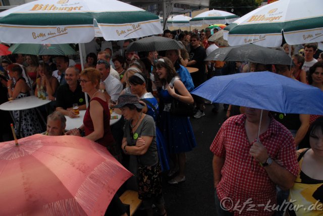 Der Veranstalter Golden Oldies ist stolz von abermals 70000 Zuschauer an 3 Tagen. Hier bei KFZ-Kultur.de sehen Sie 600 Bilder Fotos vom Samstag, den 26.7.2008 Vom 25. bis 27. Juli 2008 in Wettenberg 19. Festival Golden Oldies- Eine hessische Gemeinde auf Zeitreise in die Wirtschaftswunderzeit der 50er und 60er 3 Tage - 9 Bühnen - 50 Livebands - über 1.000 Oldtimer und 70.000 Besucher Musik & Motoren beim Festival Golden Oldies im Schatten der Burg Gleiberg Das mittelhessische Wettenberg wird zum 19. Mail für drei Tage „Deutschlands Hauptstadt der Oldiemusik“. Auf 9 Bühnen präsentieren rund 50 Musikgruppen Schlager, Beat, Soul, und Rock’n’Roll im Schatten der Burg Gleiberg. Eine atemberaubende Zeitreise in die 50er, 60er und 70er Jahre mit Deutschlands größter Oldtimer-Show. Das Motto in diesem Jahr: „Familie, Fortschritt & Souvenirs“ Das Festival hat Kultstatus und gehört zu den TOP Oldtimer Veranstaltungen in der Bundesrepublik. Was vor 18 Jahren mit nur 8 Bands, vier Bühnen und rund 3.000 begeisterten Fans begann, wurde inzwischen von der Fachpresse zu „Deutschlands schönster Oldiefete“ nominiert. Knapp 70.000 Besucher zählte das Festival im vergangenen Jahr. Mit Bus, Bahn und eigenem PKW reisen sie aus der gesamten Bundesrepublik und auch aus dem benachbarten Ausland an, um bei diesem Ereignis dabei zu sein. Golden Oldies bietet gleichermaßen Information und Unterhaltung zur Kulturgeschichte der vergangenen 50 Jahre. Von überregionalem Interesse ist bei Autoliebhabern die Ausstellung der rund 1.000 Klassikfahrzeuge am Sonntag, 27. Juli 2008 zu der private Fahrzeugbesitzer und über 50 Oldtimerclubs eingeladen sind.. Fahrzeuge, die zum Motto „Familie, Fortschritt Souvenirs“ passen, sind in diesem Jahr besonders gern gesehen, denn ihnen wird dieses Mal besondere Aufmerksamkeit gewidmet. Wiedersehen mit meinem ersten Auto: HEINRICH PUMPERNICKEL, alias Chris Howland. Er wird zum 19. Festival nach Wettenberg kommen, um ein Wiedersehen mit seinem 1. Auto zu feiern: Einem DKW 3=6, 2 türig fuhr "Mr. Pumpernickel" in den 50er Jahren Das Programm wird abgerundet durch zahlreiche Aktionen, Ausstellungen, ein umfangreiches Kinderprogramm und durch Deutschlands größten „Nostalgie Markt der 50er Jahre“. In rund 100 Verkaufsständen wird Originalware der sogenannten „Wirtschaftswunderzeit“ angeboten. Petticoats, Tulpenlampen, Schallplatten und Jukeboxen stehen in der Hauptstraße und in der Mehrzweckhalle zum Verkauf. Das Rockmuseum von Maria und Wolfgang Thomas stellt in der Mehrzweckhalle einen Querschnitt aus der Gesamtsammlung aus. Cruising der besonderen Art: Kinderwagen-Parade! Auf vier Rädern, 1 Fahrer(in) und meist nur mit einem Mitfahrer "belegt"... Am Samstag, dem 26. Juli 2008 gibt es ein Cruising der besonderen Art: Der Kostümverleih "Wundertüte" lädt ein, sich im Outfit der 50er/60er und mit einem Kinderwagen dieser Epoche zum Festivals Golden Oldies zu präsentieren und der „Deutsche Petticoat-Wettbewerb“ lädt alle Besucher des Festivals zu einer Zusammenkunft im Outfit der 50er bis 70er Jahre ein. Zusammengestellt wird das Festival von der Peter Turczak eventeam GmbH & Co KG. Unterstützt wird das Festival Golden Oldies von der Bitburger Brauerei, Neils & Kraft Mercedes Partner der Daimler-Chrysler AG, der Deutschen Bahn AG und der SFinanzgruppe Hessen-Thüringen. Nähere Informationen unter www.Golden-Oldies.de oder direkt bei der Gemeinde Wettenberg, 35435 Wettenberg, Telefon: 06 4 1 – 8 04 62