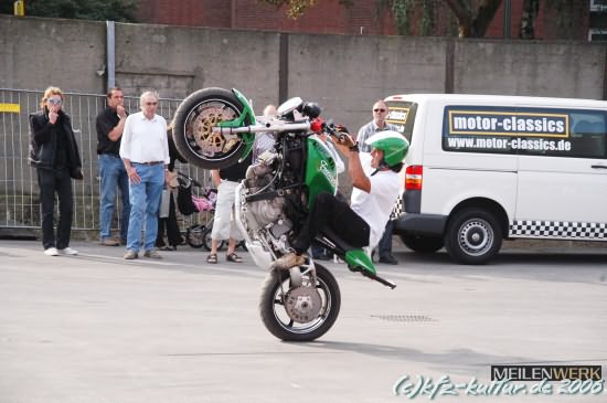 Start frei: Am 16. und 17. September 2006 trifft sich die Oldtimer-Szene zur Eröffnung des Meilenwerk Düsseldorf. "Das neue Düsseldorfer Forum für Fahrkultur ist nach Berlin das zweite Projekt unseres Meilenwerk-Teams - und übertrifft das erfolgreiche Berliner Meilenwerk noch an Größe" beschreibt Meilenwerk-Initiator Martin Halder die Düsseldorfer Dependance. Untergebracht in einem nach denkmalpflegerischen Gesichtspunkten sorgfältig restaurierten ehemaligen Ringlokschuppen mit 140 Meter Durchmesser aus den 30iger-Jahren bietet das neue Düsseldorfer Meilenwerk in der Harffstrasse 110 auf 19.000 Quadratmetern Grundfläche alles unter einem Dach, was Klassiker-Enthusiasten zur Ausübung ihres Hobbys suchen: Restaurierungsbetriebe, Klassiker-Händler, Autopfleger, Elektriker, Versicherungsservice, Gutachter, Buchhändler, einen Modellautoshop sowie Automobilia und Bekleidung speziell aus dem Klassik-Bereich. 75 verglaste Oldtimer-Einstellboxen, die 800 Quadratmeter große Veranstaltungsfläche, Restaurants und Seminarräume für Clubtreffen machen auch das Düsseldorfer Meilenwerk zur echten Oldtimer-Erlebniswelt.